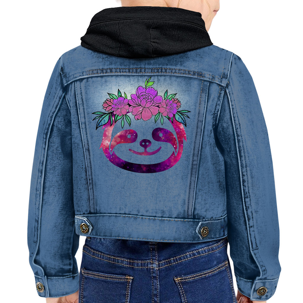 Adorable Sloth Toddler Hooded Denim Jacket is made from a cotton blend fabric and has the perfect fit that’s ‘just right.’ It’s lighter than a winter coat, so it works a treat layered over sweaters. To complete the outfit, team with jeans and leggings, and finish off with adorable boots.