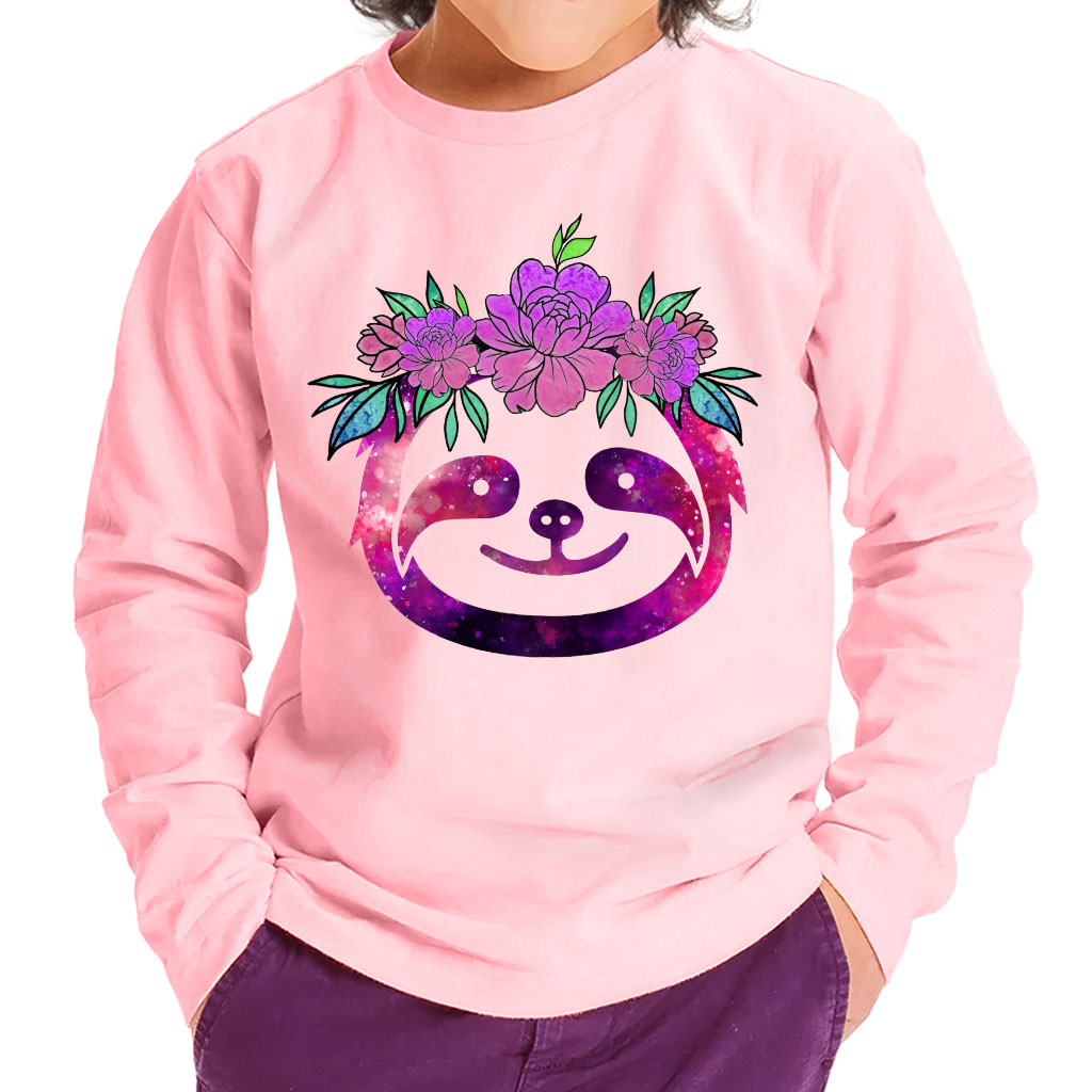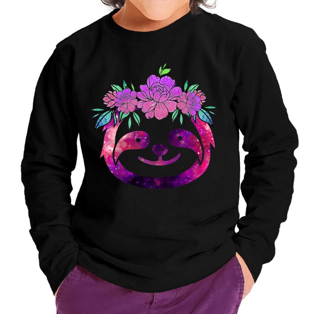 Adorable Sloth Toddler Long Sleeve T-Shirt – Funny Animal Gift – Colorful Sloth and Llama Clothing