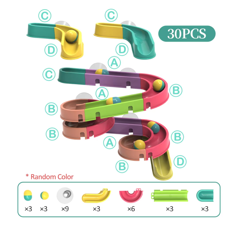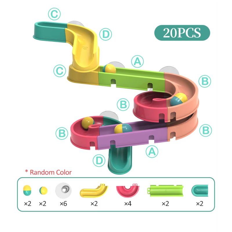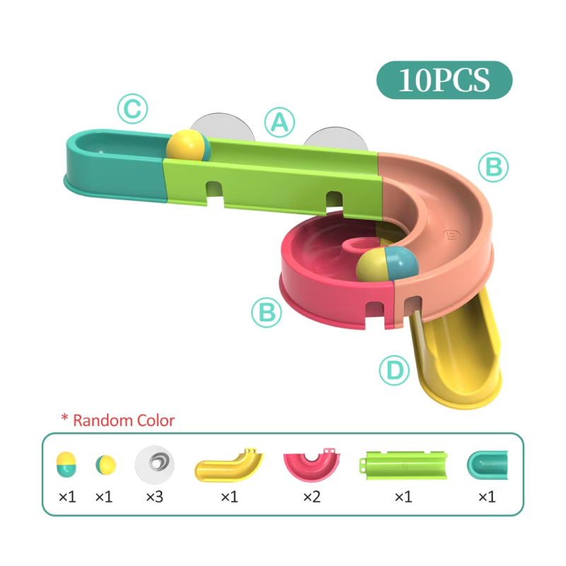 Bring endless joy and creativity to your child’s bath time with this engaging Rainbow Slide Toy Set! This colorful, buildable marble race track attaches to the bathtub wall, creating an exciting water game for kids to explore. With high-quality ABS plastic blocks and smooth, kid-safe edges, it’s designed to be durable and safe for children, while encouraging creativity and problem-solving. Ideal for kids aged 12 months and up, this bath toy set offers a fun way for children to learn, build, and play all at once.