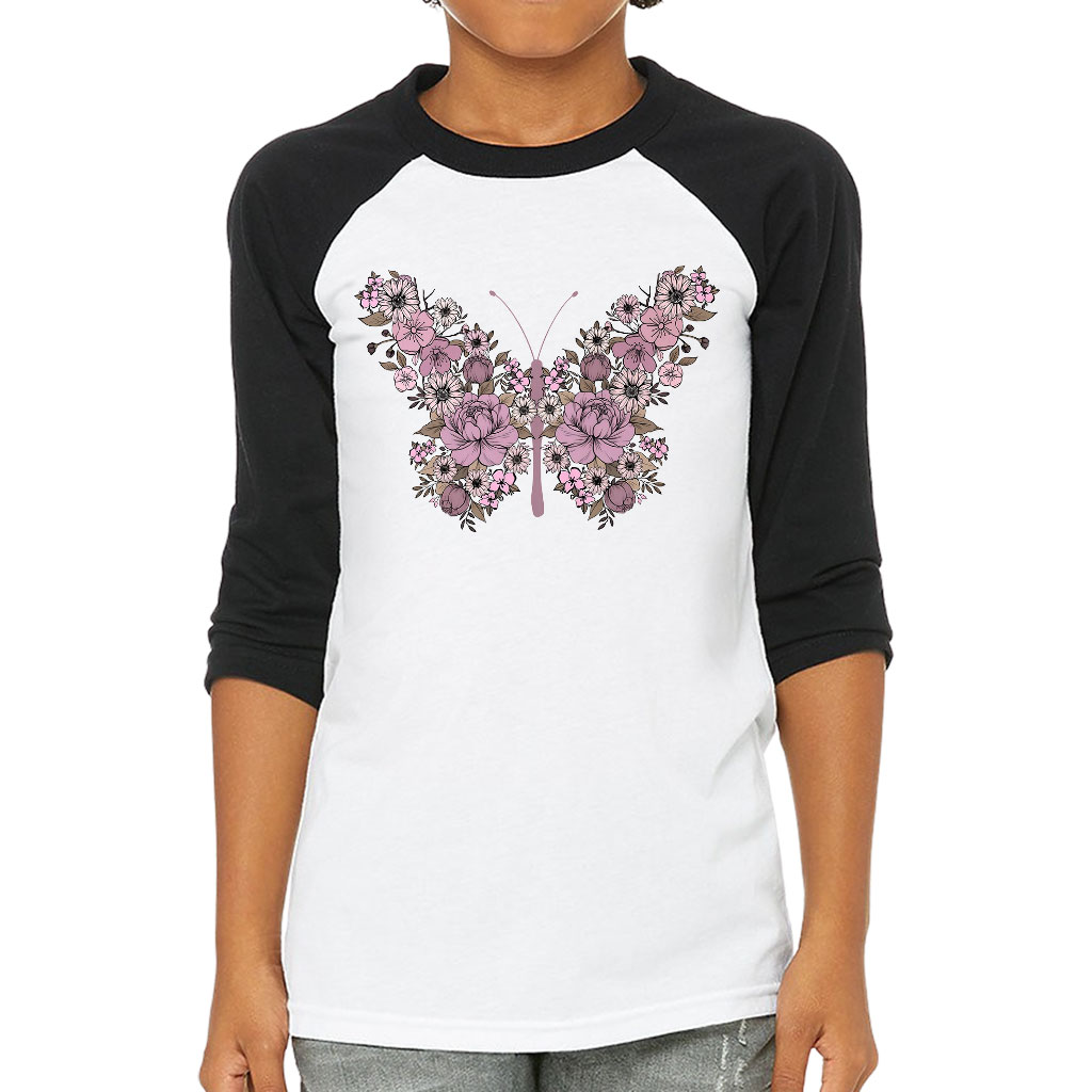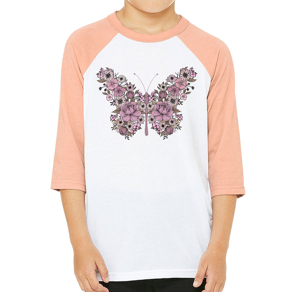 Boho Floral Butterfly Kids’ Baseball T-Shirt