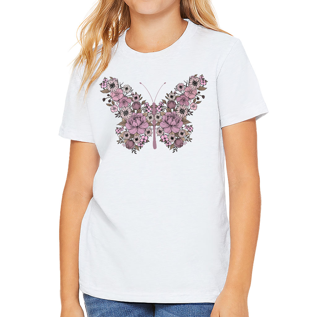 Boho Floral Butterfly Kids’ T-Shirt is no ordinary piece of clothing. Its crew neck and short