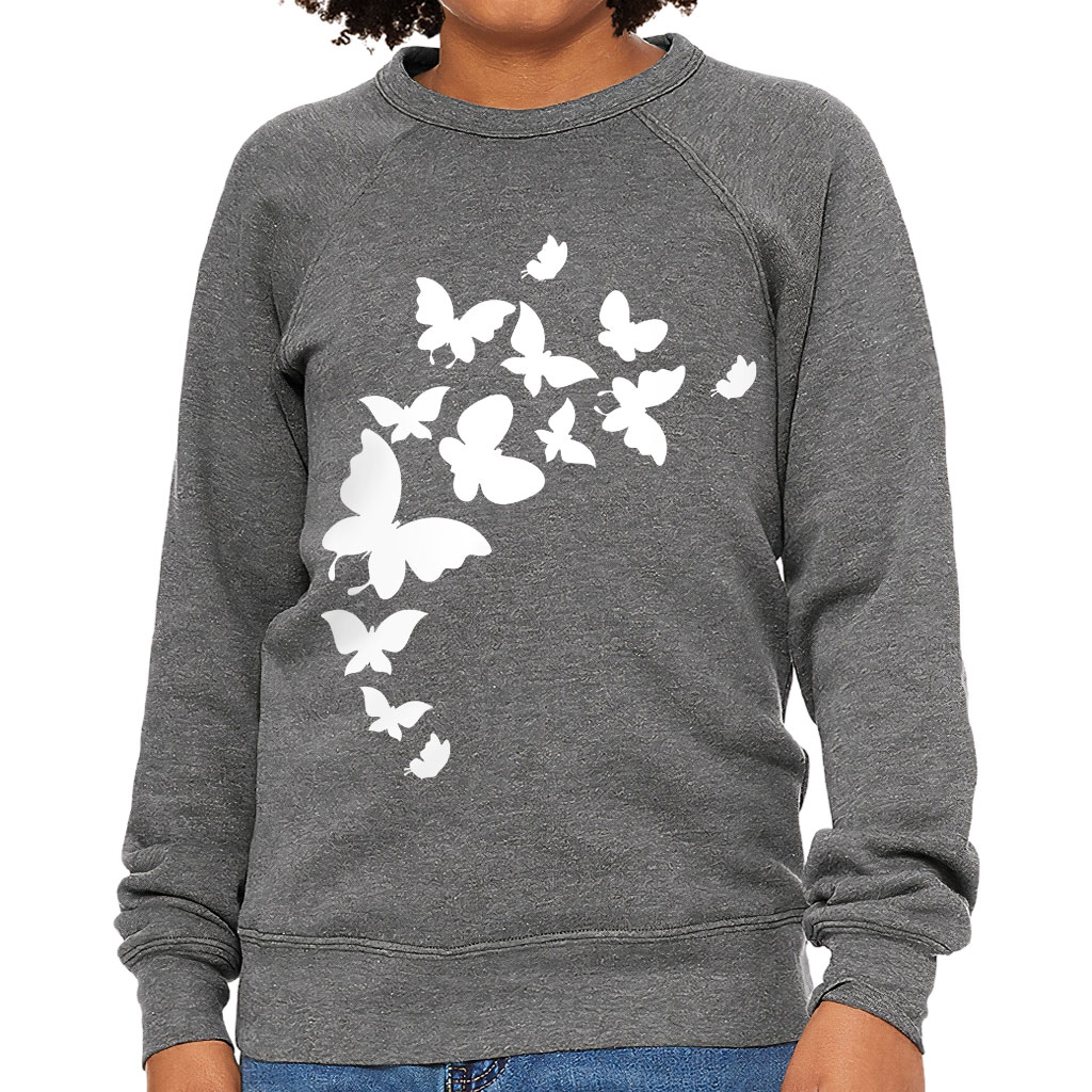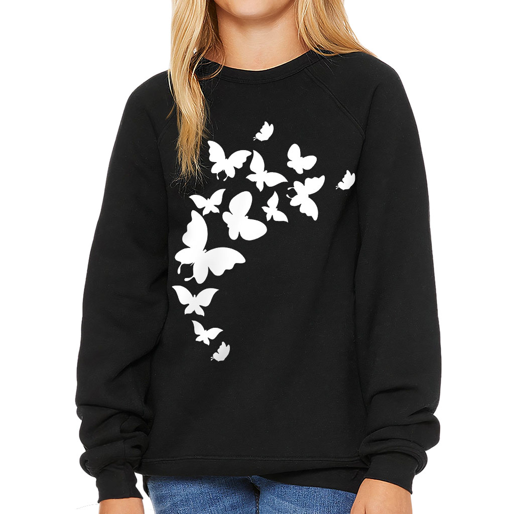 This remarkably soft pullover crewneck sweatshirt lends itself to daily wear and year-round layering. Butterflies Kids’ Raglan Sweatshirt features ribbed cuffs and a waistband, a crew neck, and a fashion-forward fleece fabrication.