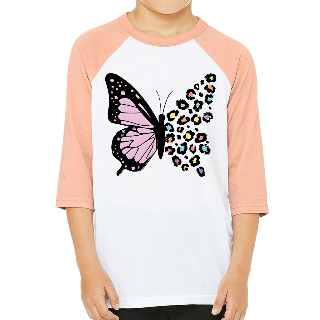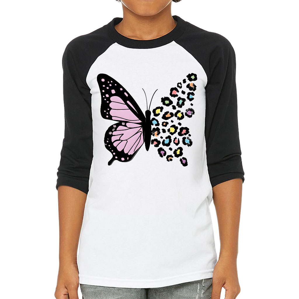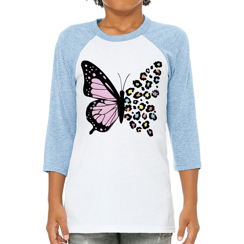 Colorful Leopard Butterfly Kids’ Baseball T-Shirt