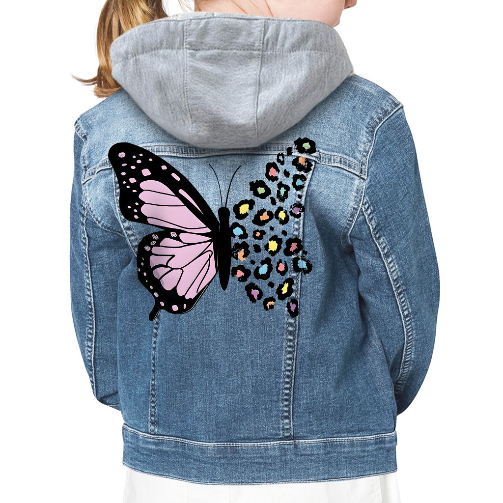 Colorful Leopard Butterfly Kids’ Hooded Denim Jacket
