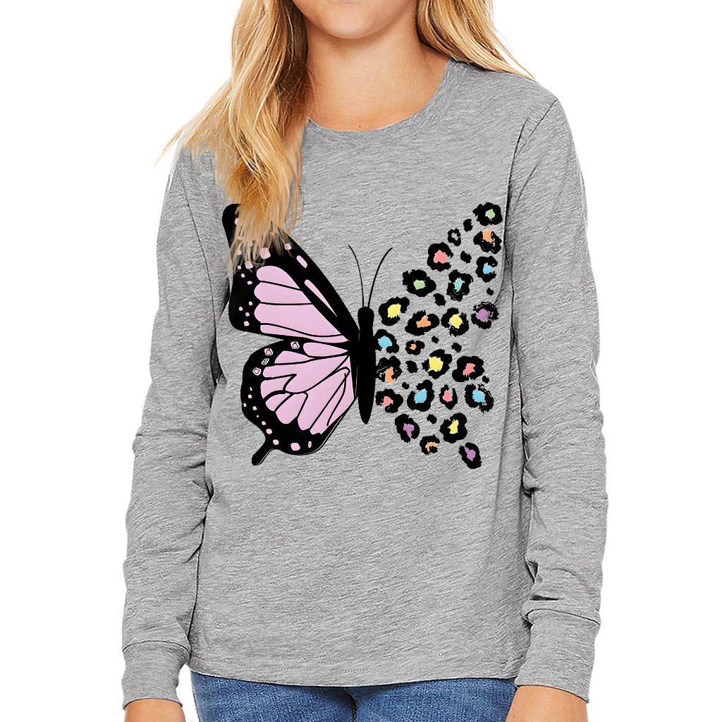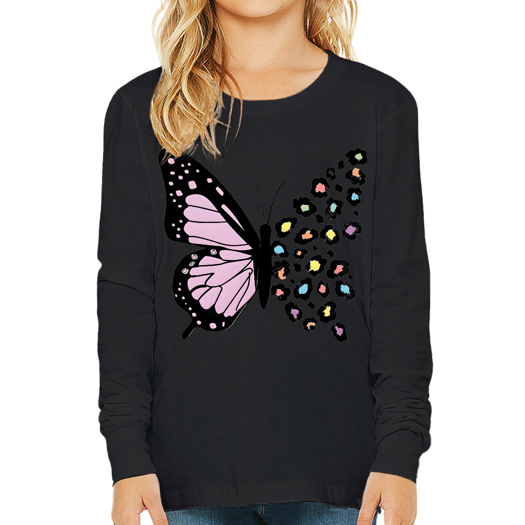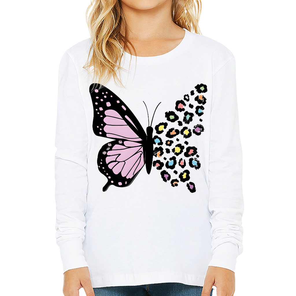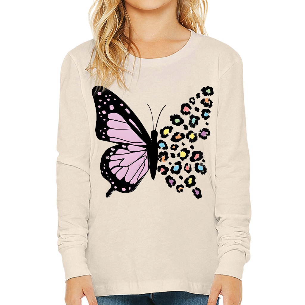 Colorful Leopard Butterfly Kids’ Long Sleeve T-Shirt