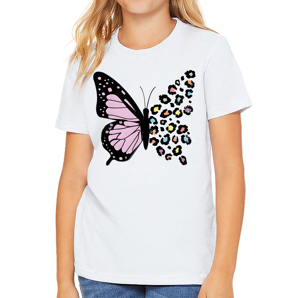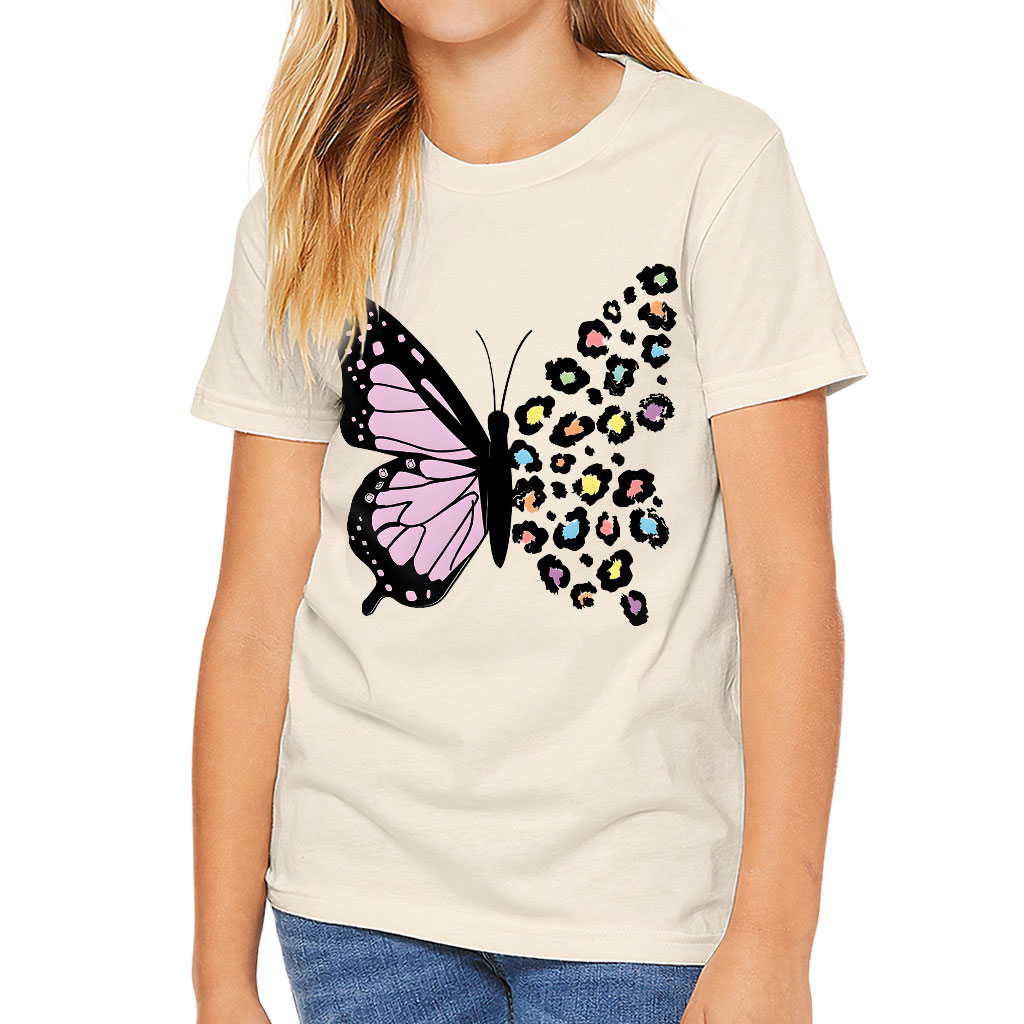 Colorful Leopard Butterfly Kids’ T-Shirt is no ordinary piece of clothing. Its crew neck and short