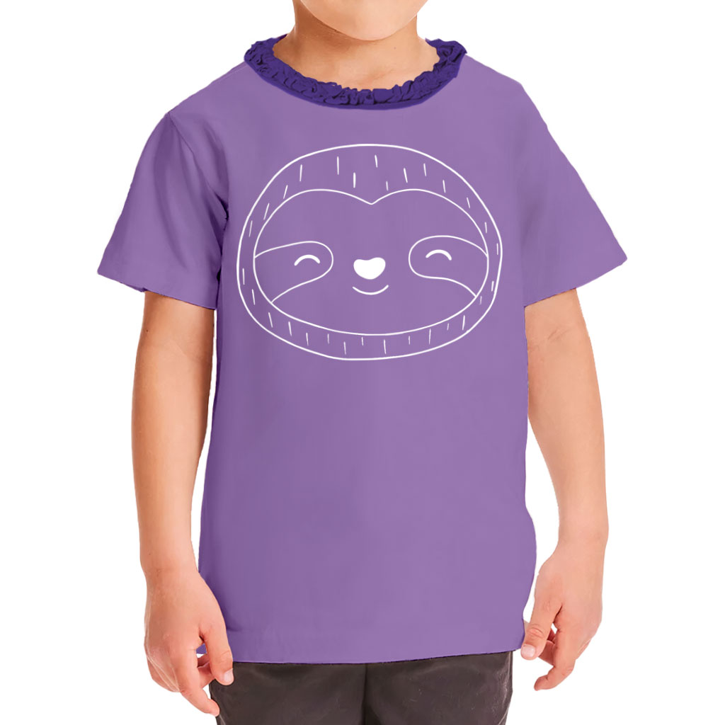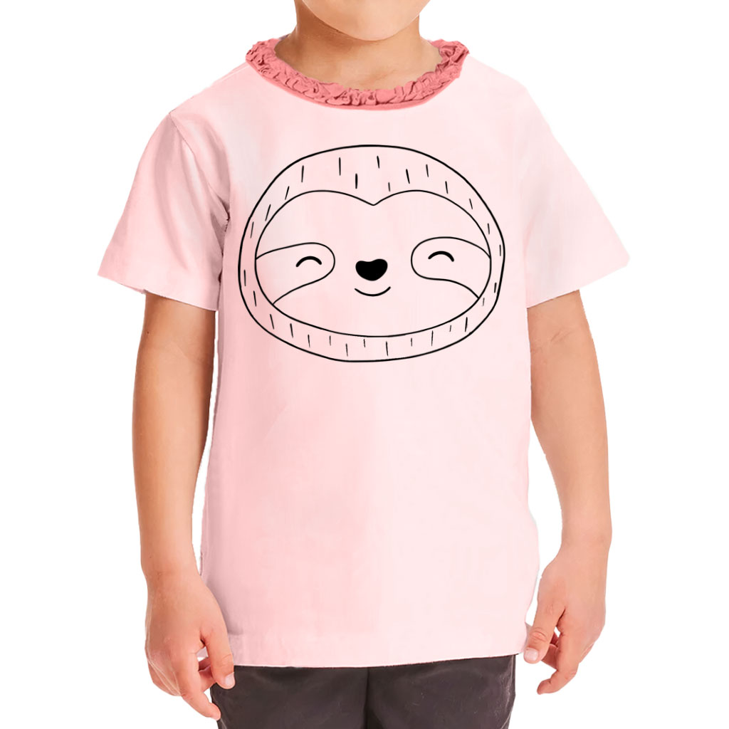 Cute Sloth Girls’ Ruffle Neck T-Shirt
