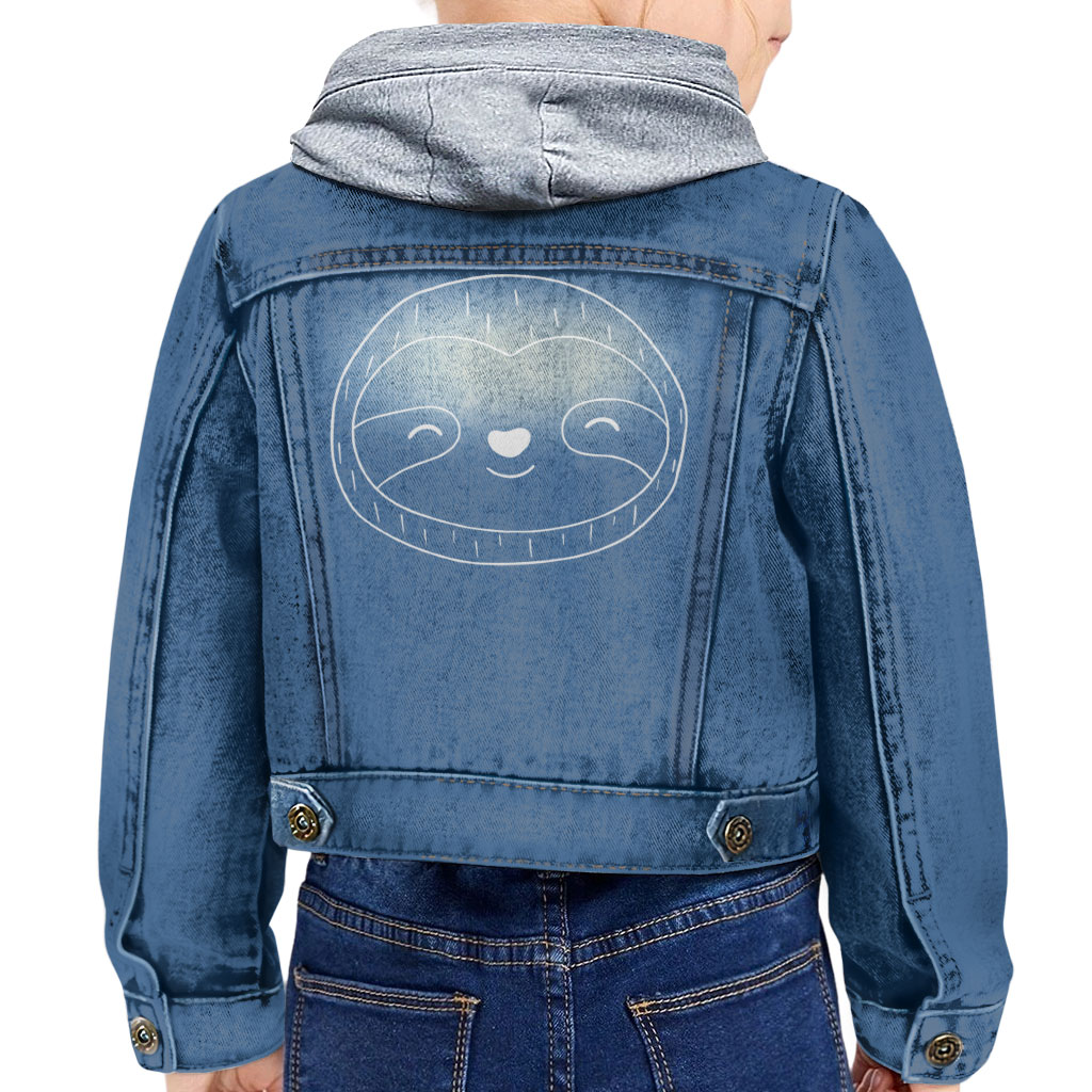Cute Sloth Toddler Hooded Denim Jacket is made from a cotton blend fabric and has the perfect fit that’s ‘just right.’ It’s lighter than a winter coat, so it works a treat layered over sweaters. To complete the outfit, team with jeans and leggings, and finish off with adorable boots.