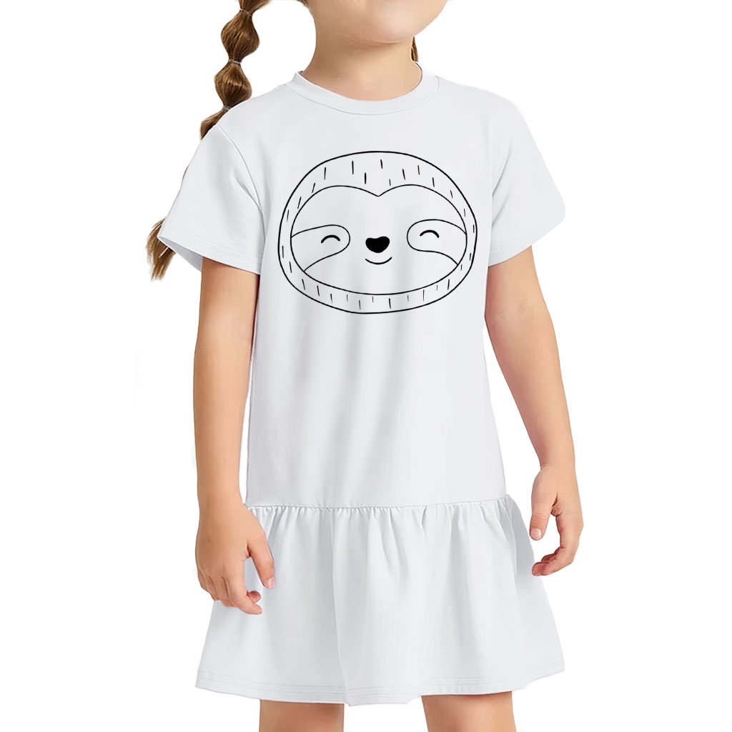The design is printed on a soft, comfortable, 100% combed ringspun cotton short-sleeve dress. Cute Sloth Toddler Rib Dress will become a staple in your child’s wardrobe.
