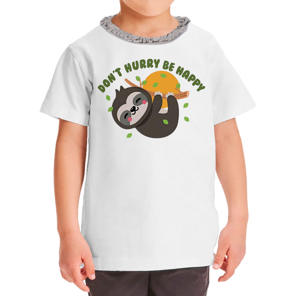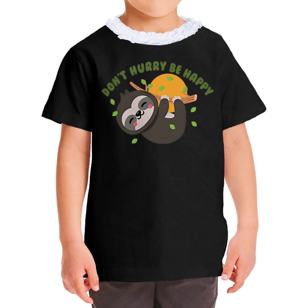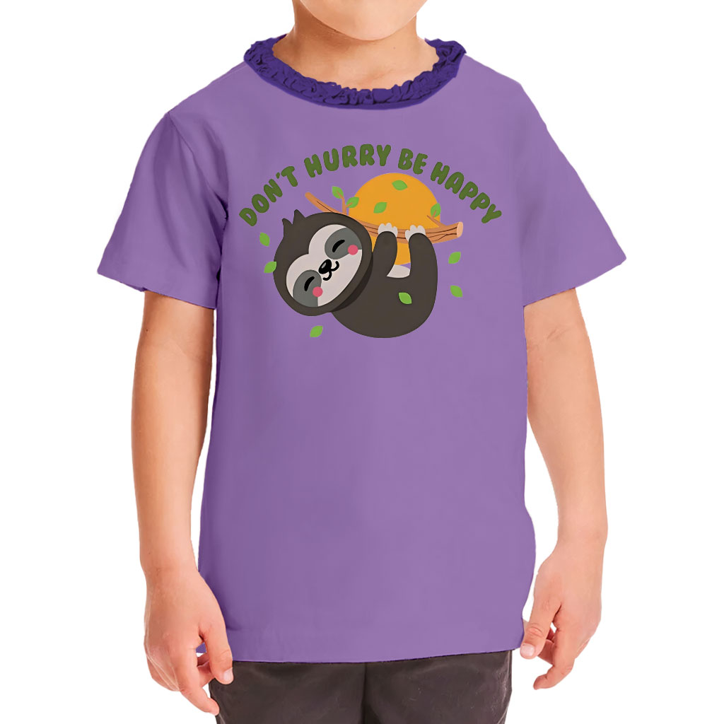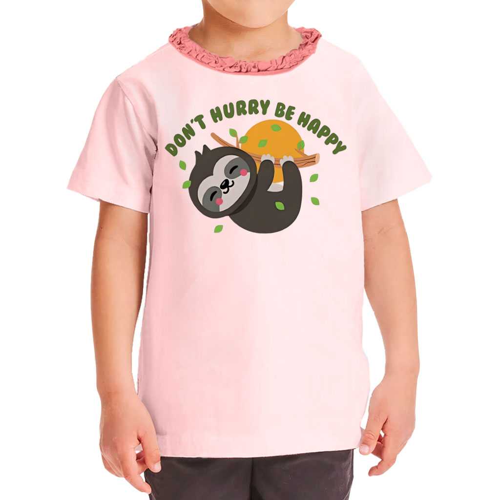 Don’t Hurry Be Happy Girls’ Ruffle Neck T-Shirt