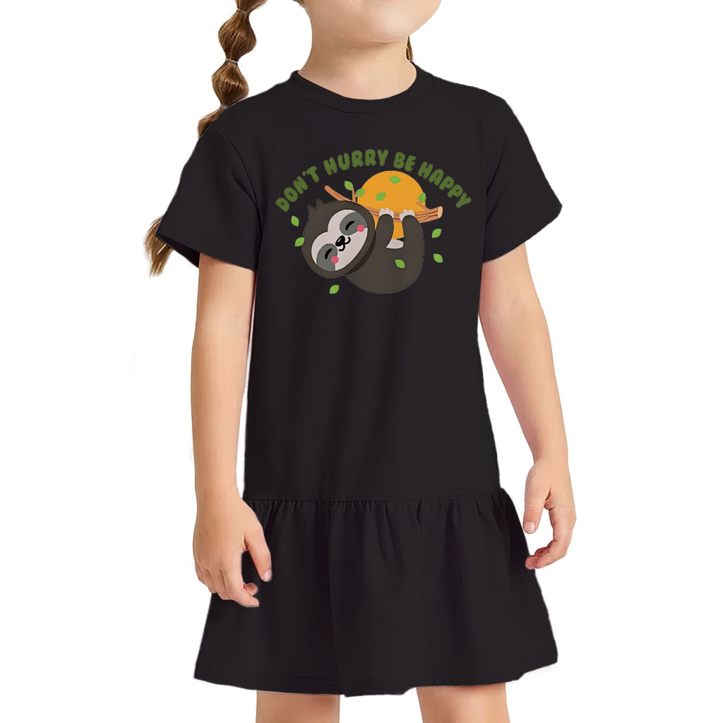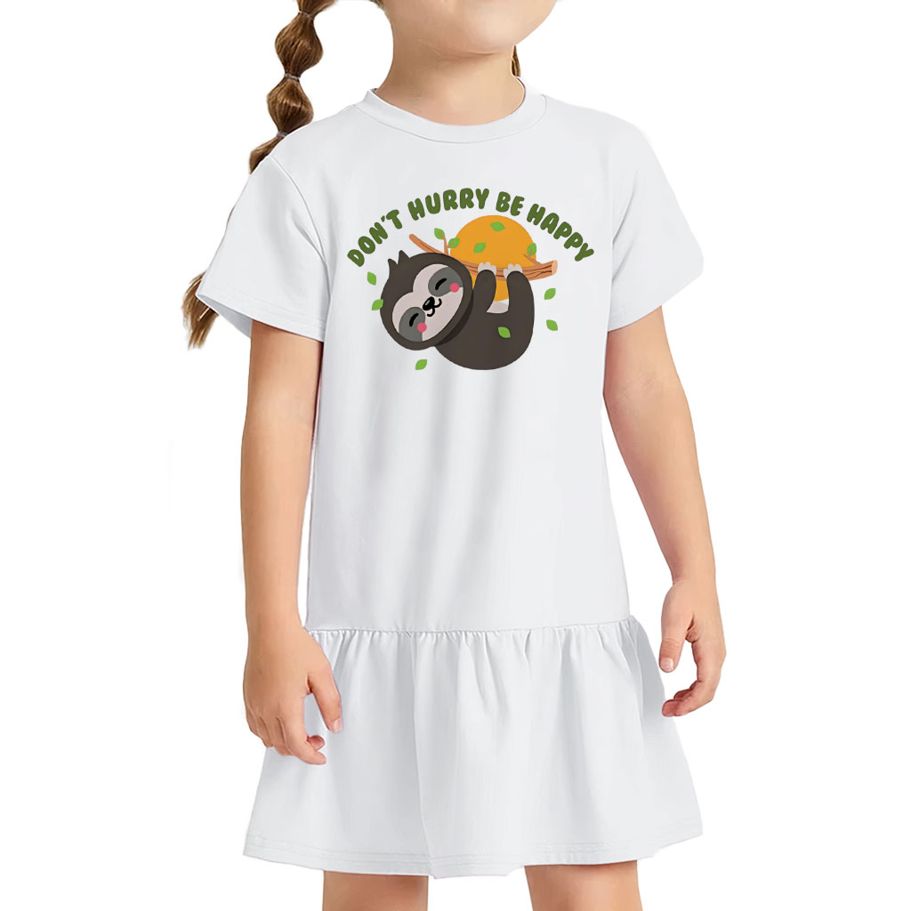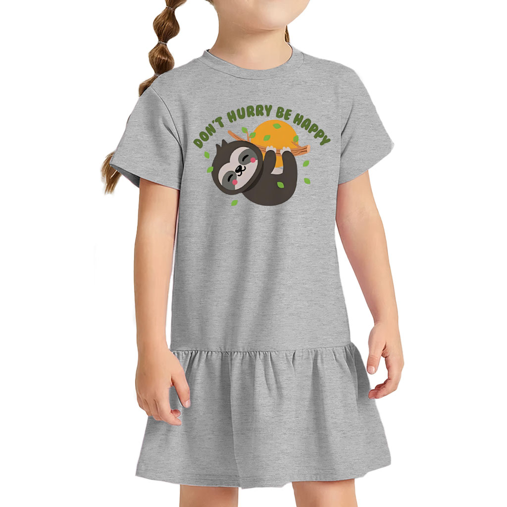 The design is printed on a soft, comfortable, 100% combed ringspun cotton short-sleeve dress. Don’t Hurry Be Happy Toddler Rib Dress will become a staple in your child’s wardrobe.