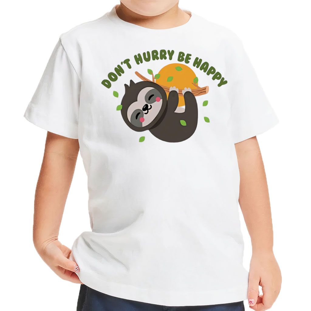 Don’t Hurry Be Happy Toddler T-Shirt is no ordinary piece of clothing. Its crew neck and short sleeves provide a comfy fit.