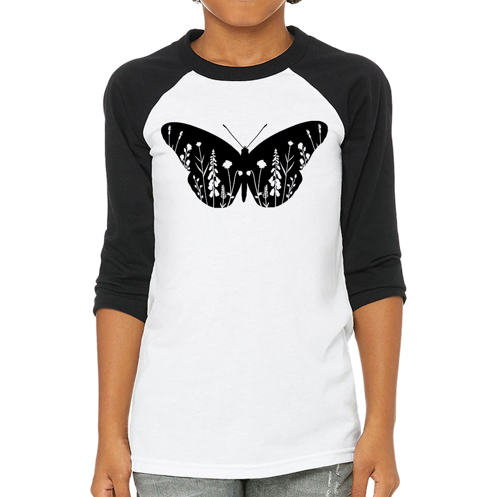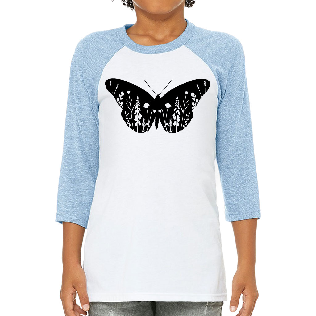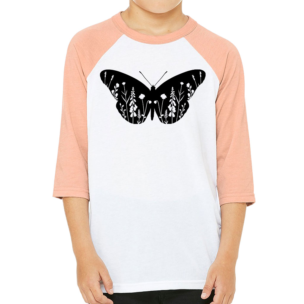Floral Butterfly Kids’ Baseball T-Shirt