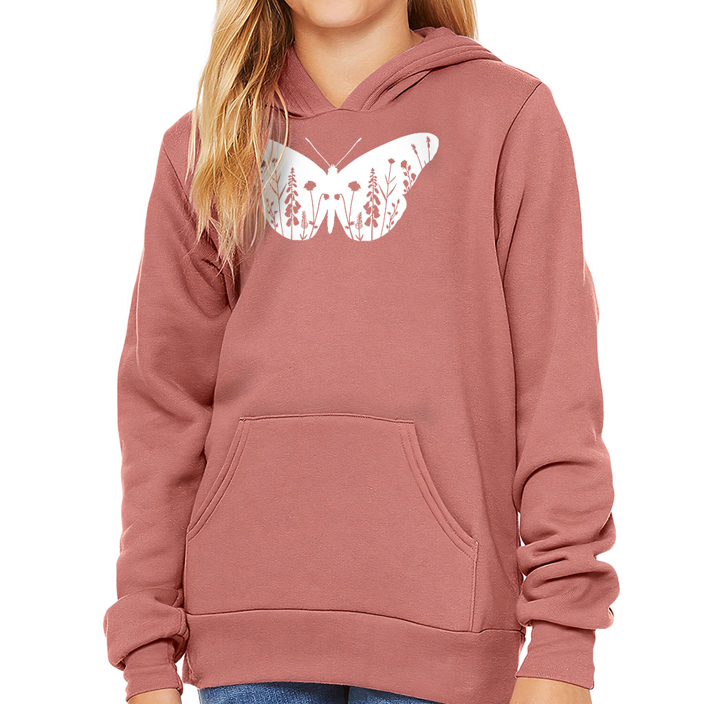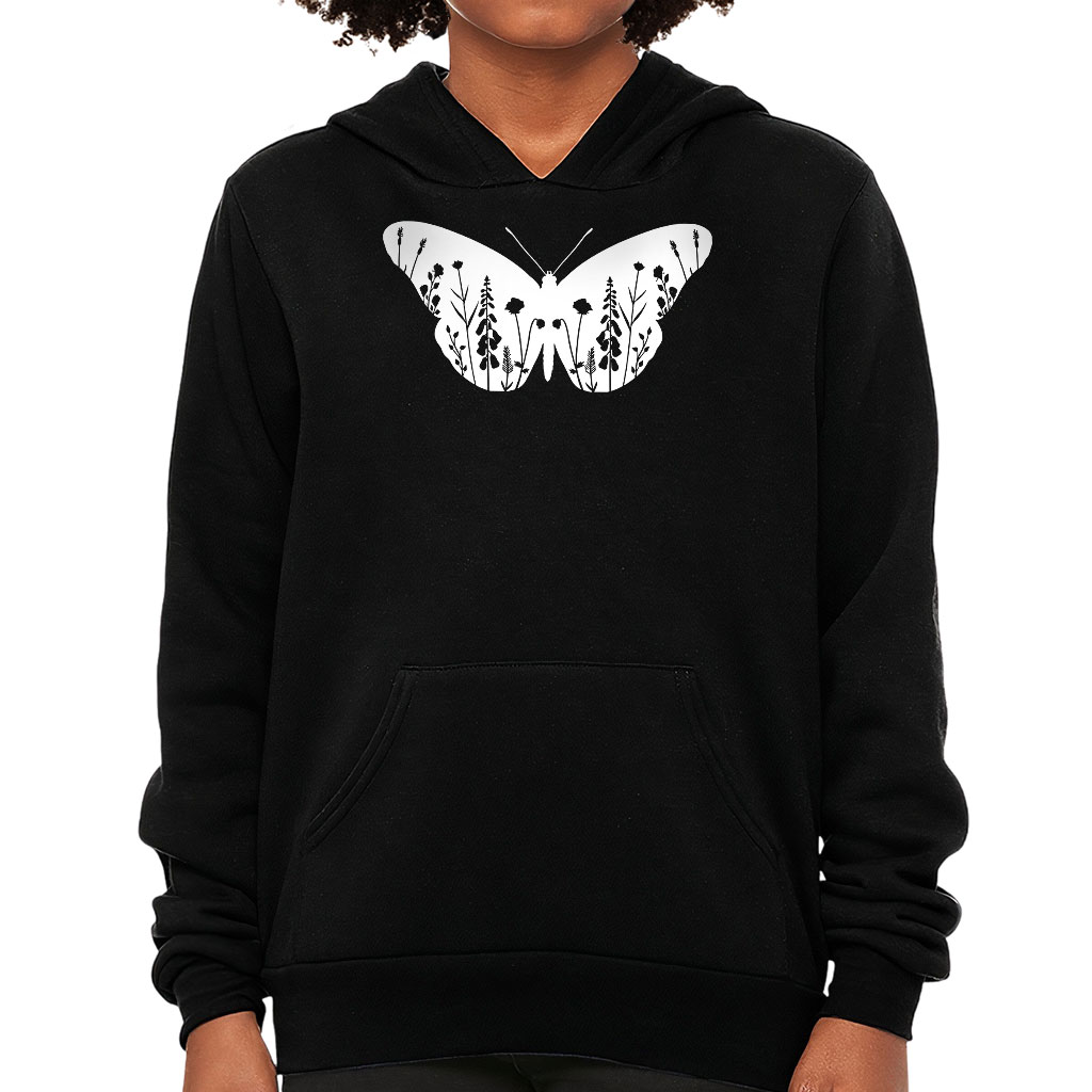 Floral Butterfly Kids’ Hoodie is no ordinary piece of clothing. Its top-stitched hood and
