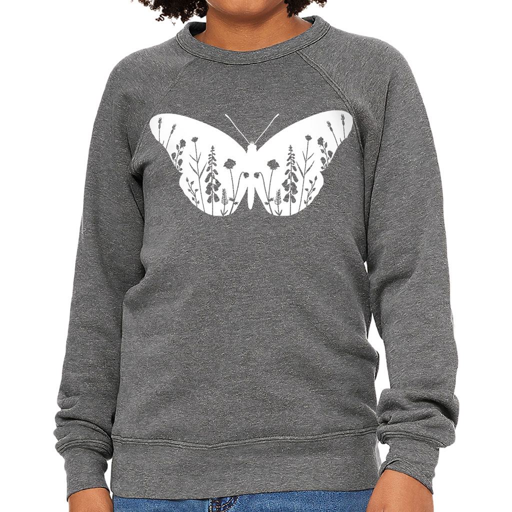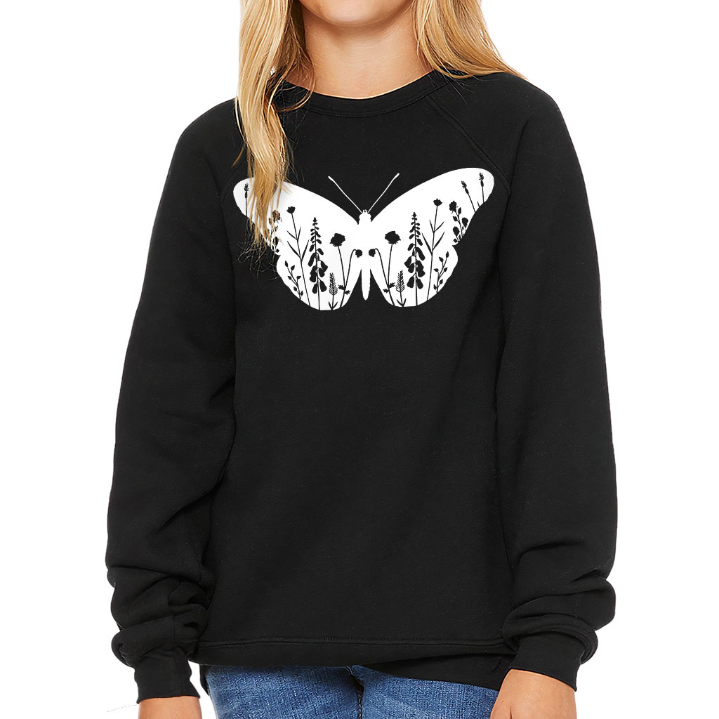 Floral Butterfly Kids’ Raglan Sweatshirt – Gift for Nature Lover – Butterfly Clothing