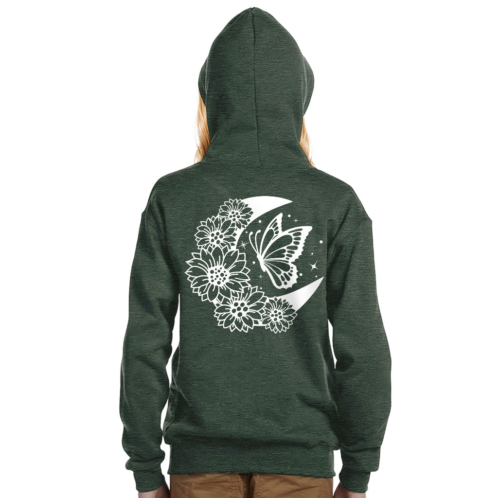 Floral Moon Butterfly Kids’ Full-Zip Hoodie