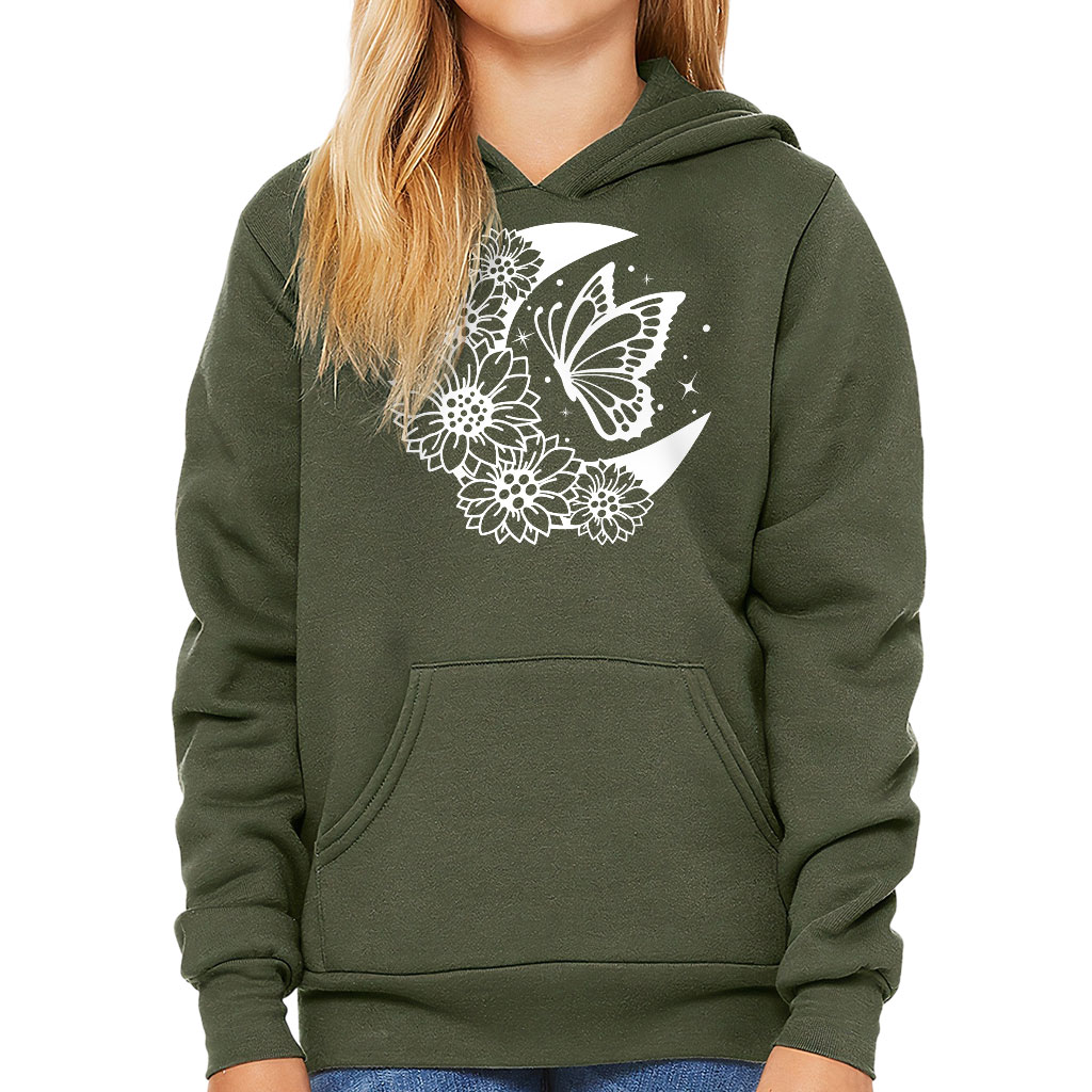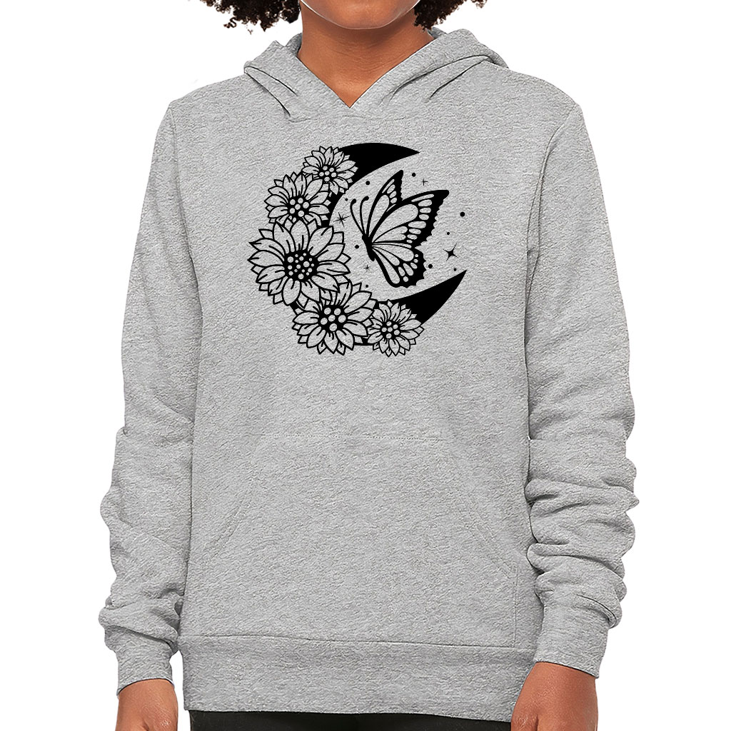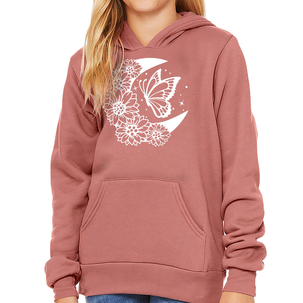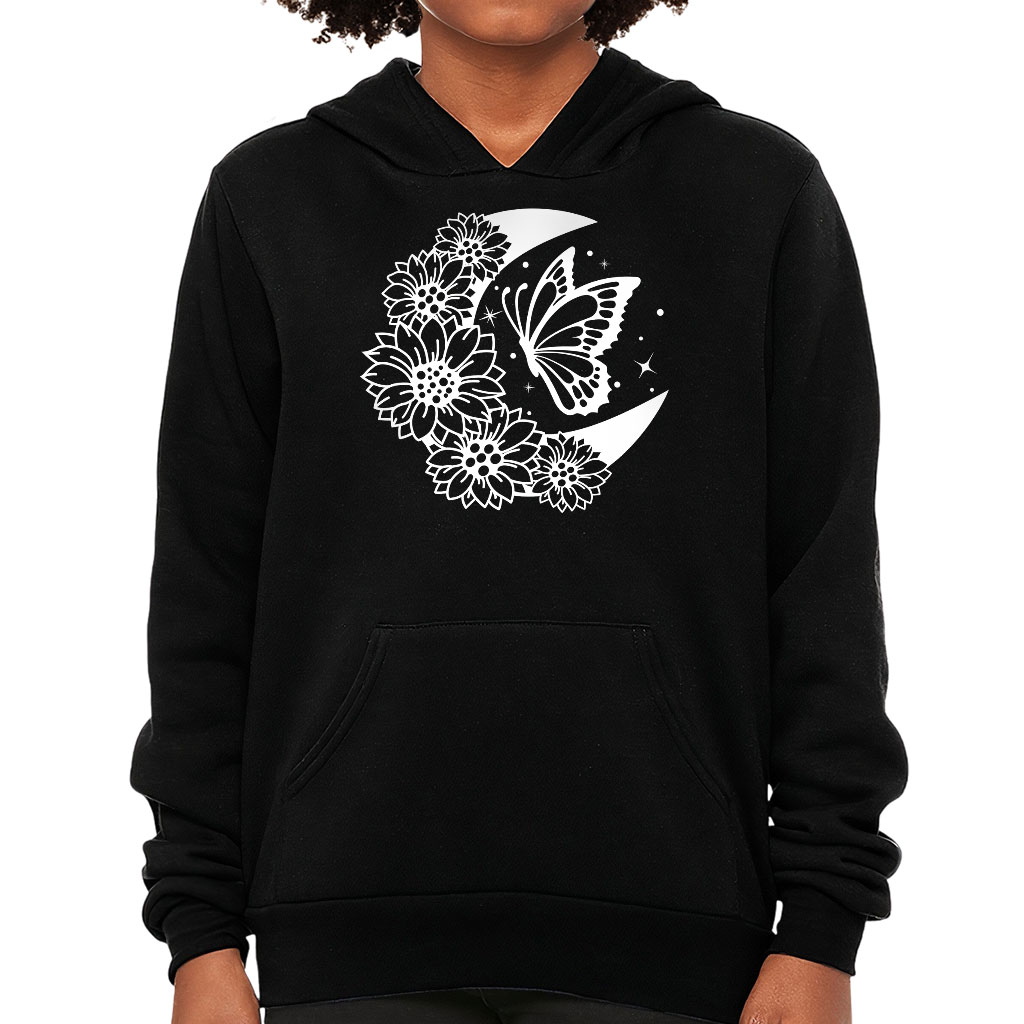 Floral Moon Butterfly Kids’ Hoodie is no ordinary piece of clothing. Its top-stitched hood and