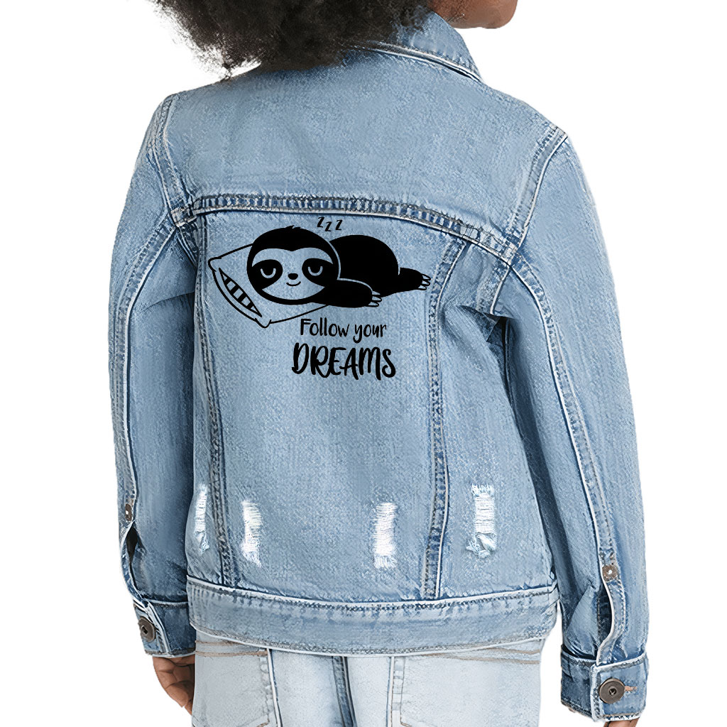Follow You Dreams Toddler Denim Jacket – Stylish Colorful Sloth Llama – Sloth Llama Gifts for Girls