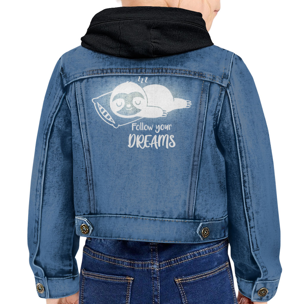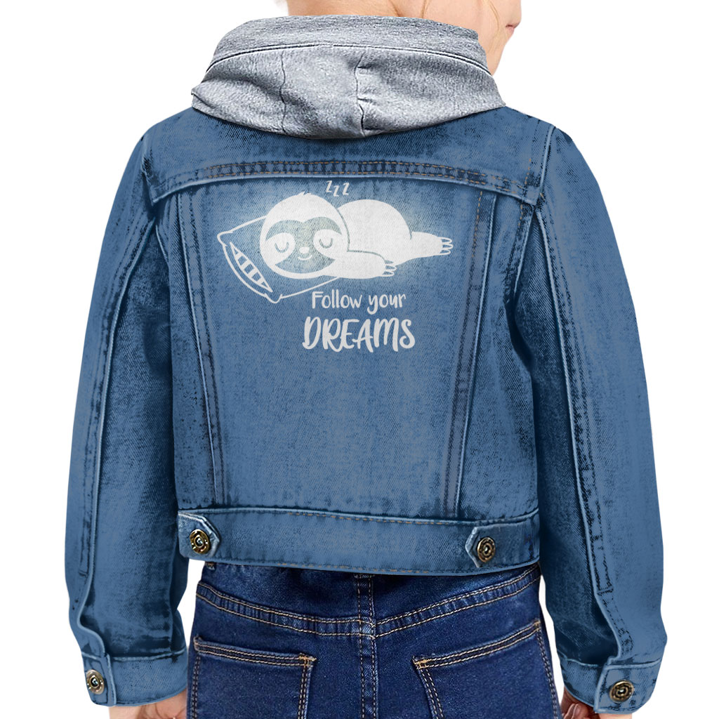 Follow You Dreams Toddler Hooded Denim Jacket – St Patrick’s Day Sloth Gift – Sloth Llama Gifts for Girls