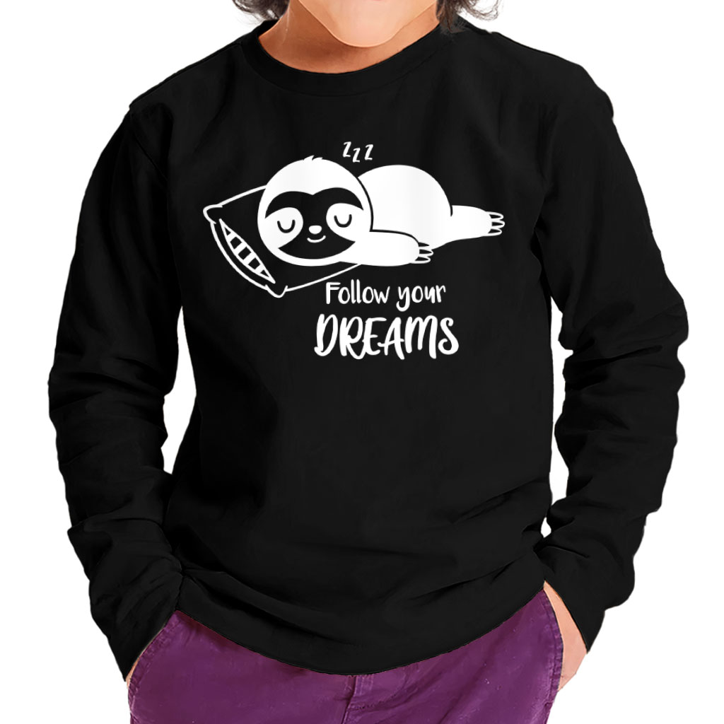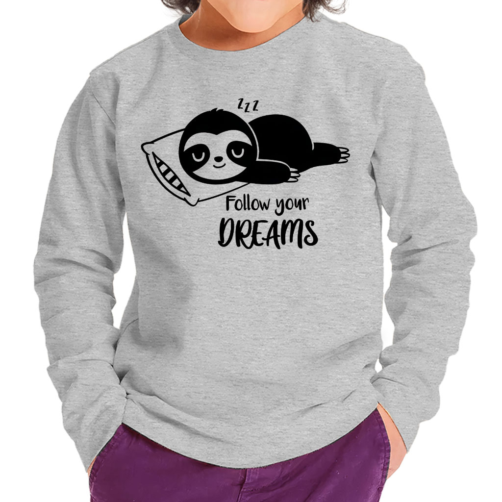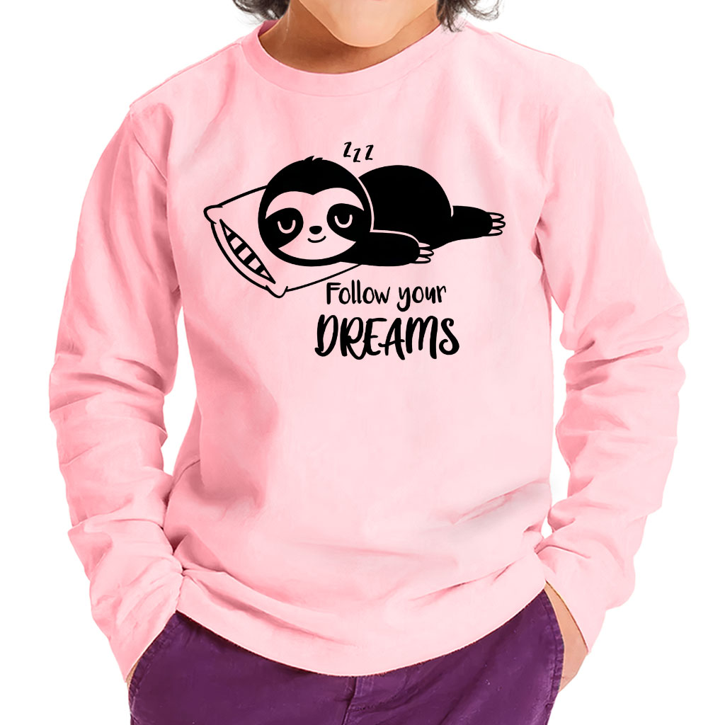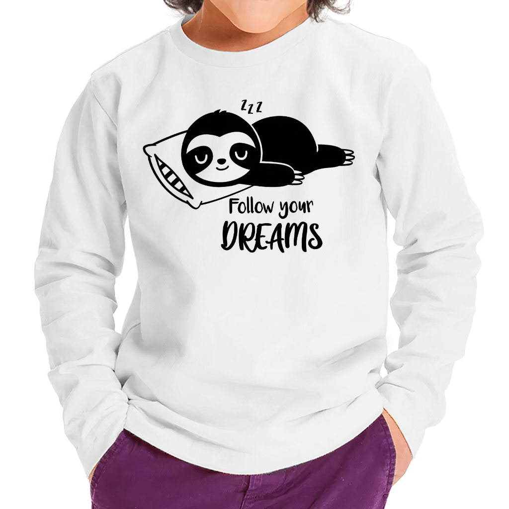 Follow You Dreams Toddler Long Sleeve T-Shirt – St Patrick’s Day Sloth Gift – Funny Girls Clothing