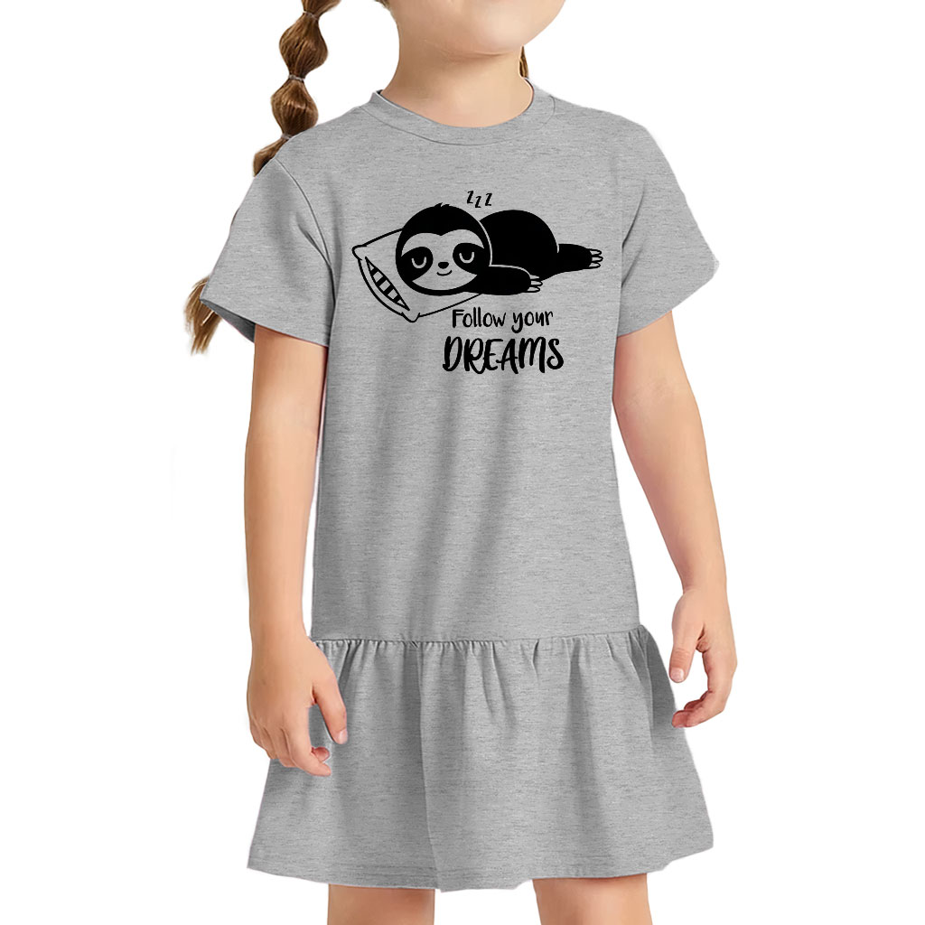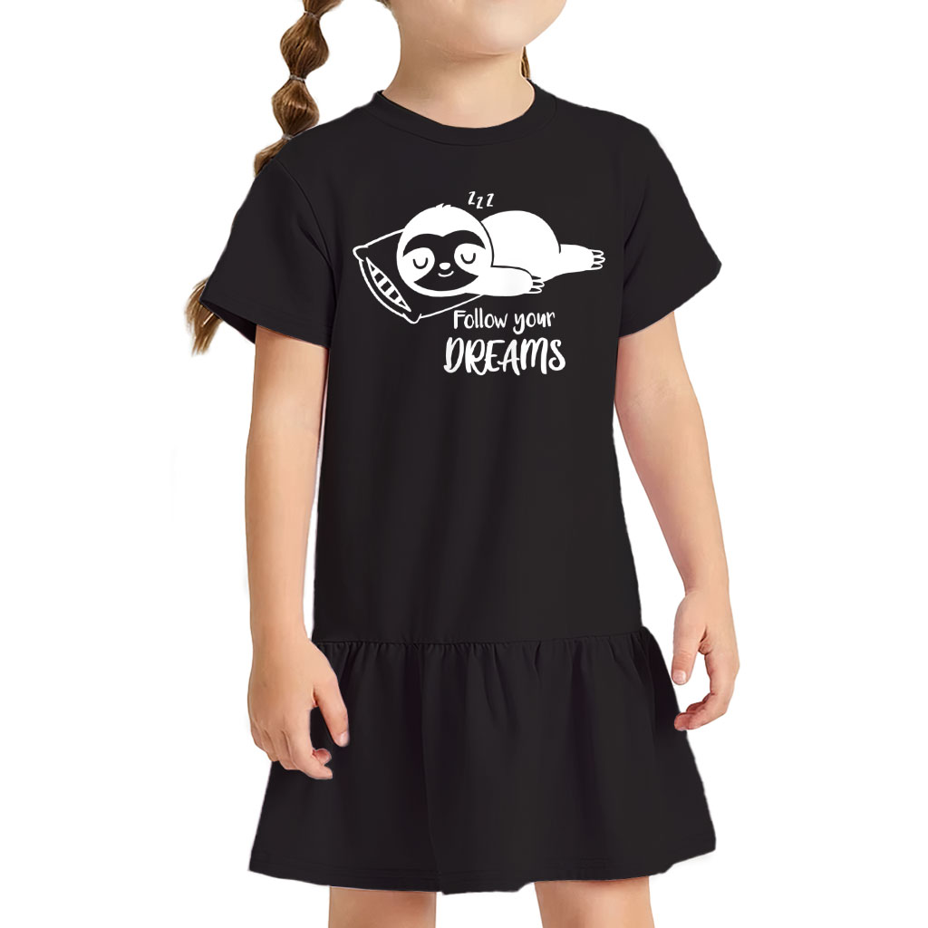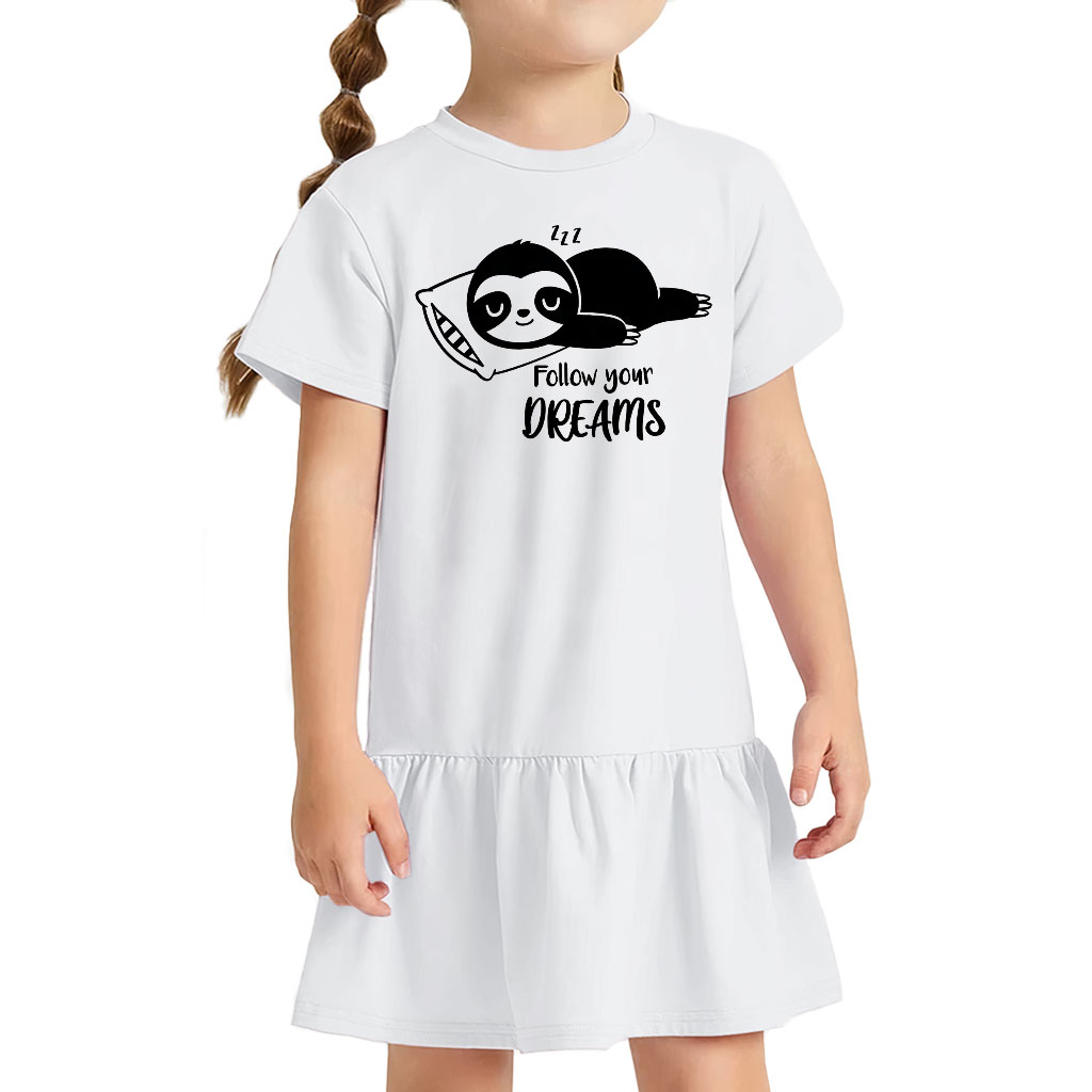 Follow You Dreams Toddler Rib Dress – Sloth Style for Girls – Cute Cartoon Apparel