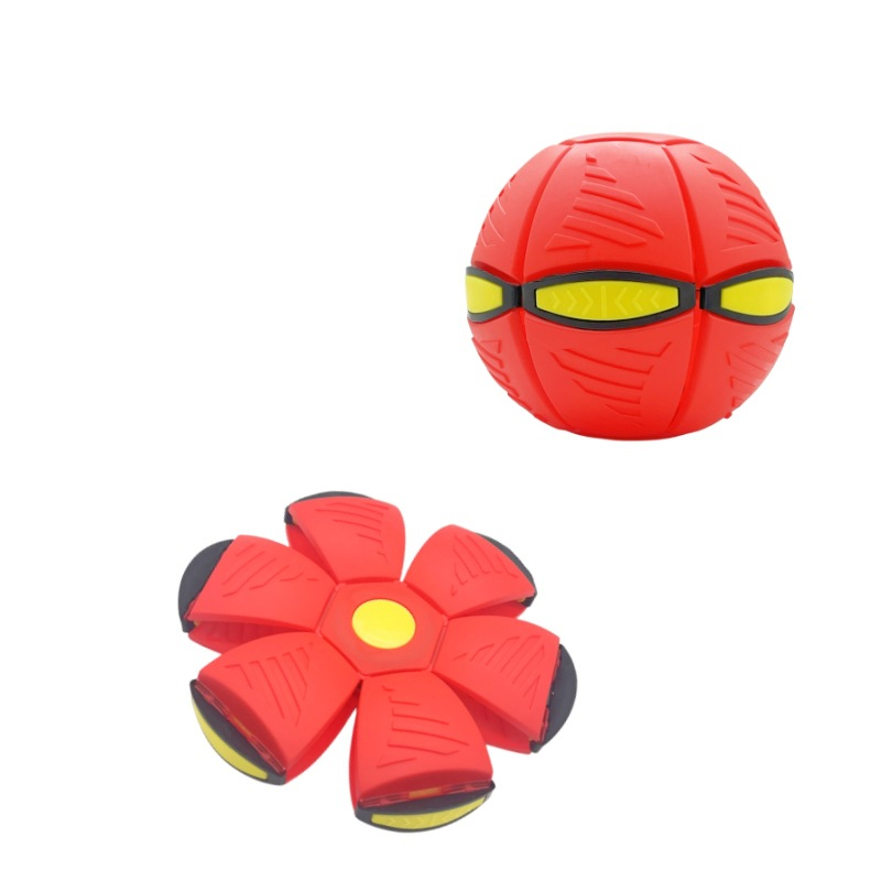 The Flying UFO Dog Toy switches seamlessly between a ball and a saucer shape, making it versatile for different kinds of play. Simply press the yellow circle in the center to flatten it into a saucer, then throw or stomp to watch it pop back into a ball mid-air. This dual-form design enhances your dog’s agility, reaction speed, and provides mental stimulation. Available in vibrant colors like red, blue, purple, and green, each color has corresponding light-up effects, adding an extra layer of excitement for your pet.