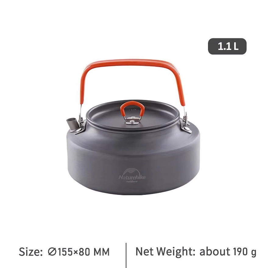 Weighing just 190g for the 1.1L model and 220g for the 1.45L model, this kettle won’t add bulk to your backpack but will elevate your outdoor experience. Its durable aluminum alloy build is corrosion-resistant and designed to withstand the rigors of outdoor use, making it an essential piece of camping tableware. The ergonomic handle is heat-resistant and easy to grip, allowing you to pour comfortably even when the kettle is hot. Whether you’re on a solo camping trip or sharing a sunrise coffee with friends, this kettle offers a convenient way to enjoy hot drinks anywhere.