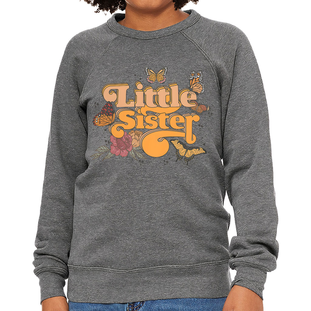 This remarkably soft pullover crewneck sweatshirt lends itself to daily wear and year-round layering. Little Sister Kids’ Raglan Sweatshirt features ribbed cuffs and a waistband, a crew neck, and a fashion-forward fleece fabrication.