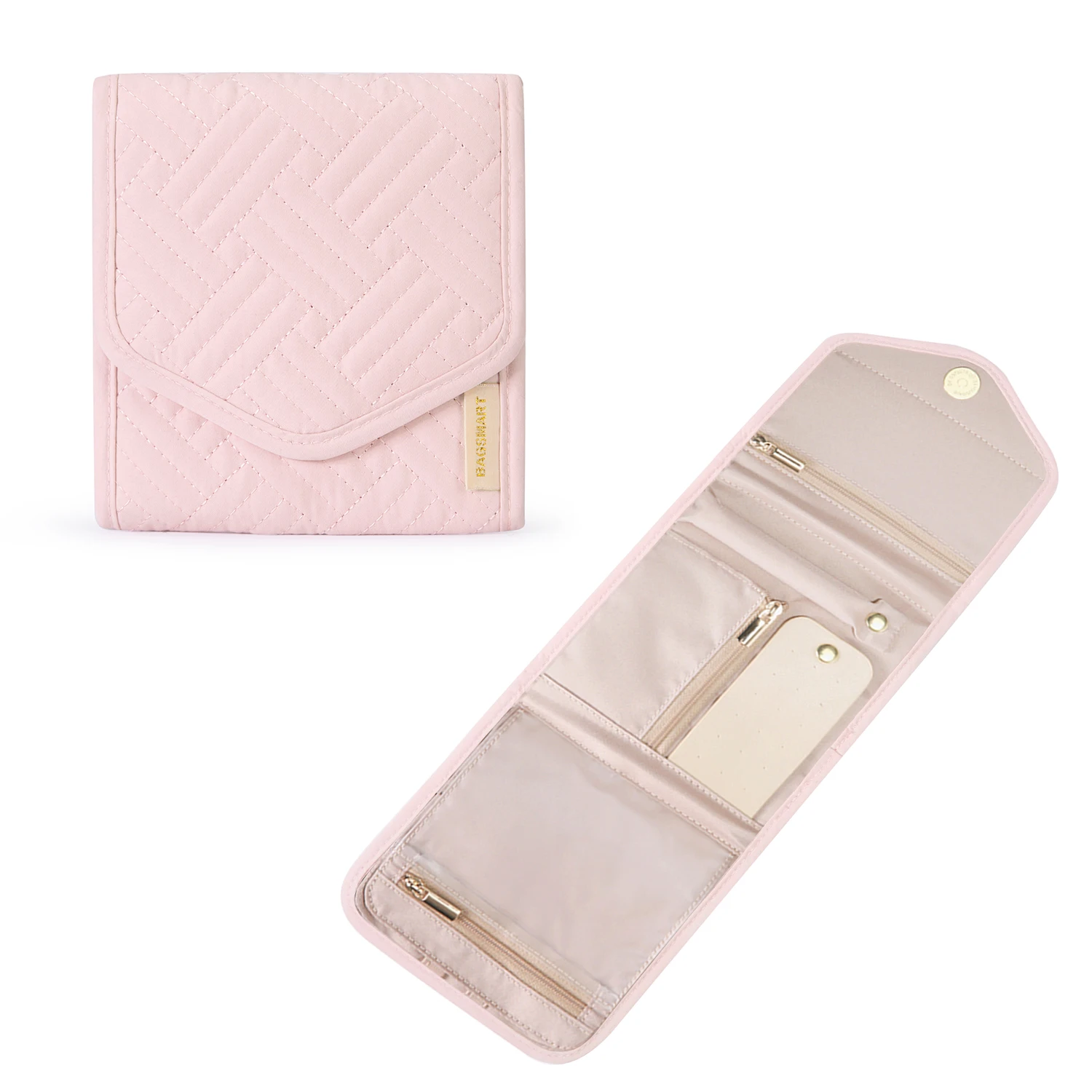 Discover the ultimate solution for keeping your jewelry organized and safe while on the go. This Portable Jewelry Organizer is designed to be your ideal travel companion, compact enough to fit in any purse or travel bag. Its mini size lets you bring your favorite jewelry pieces without the hassle, ensuring your rings, necklaces, earrings, and bracelets stay tangle-free and secure. The elegant, quilted design adds a touch of sophistication, making it perfect for both home storage and travel. Simplify your routine with this beautifully crafted jewelry storage essential.