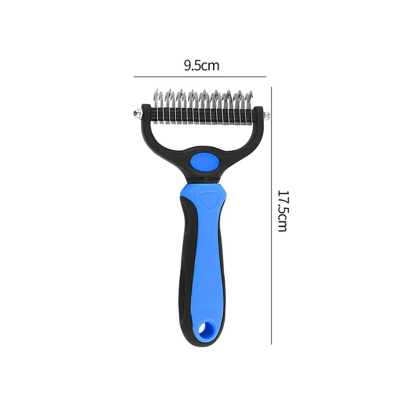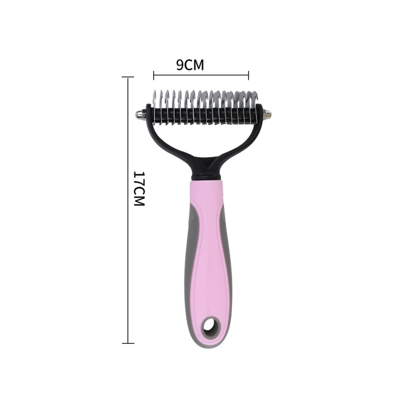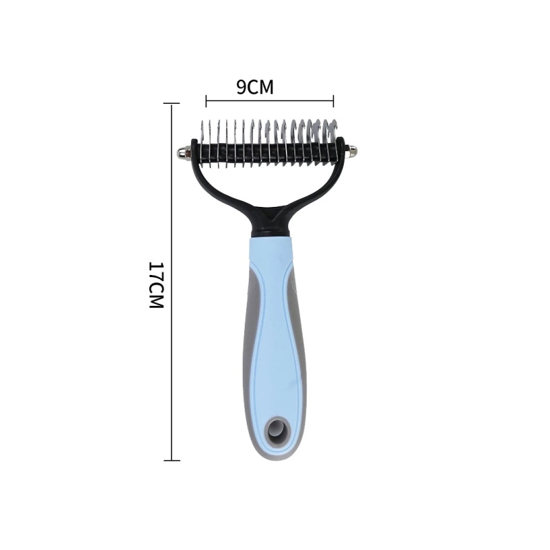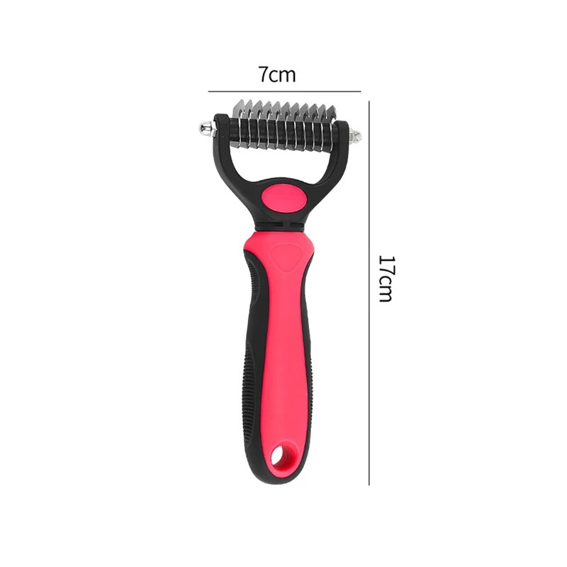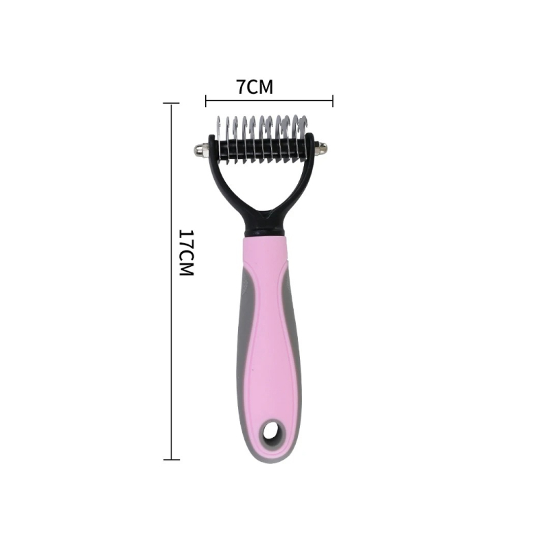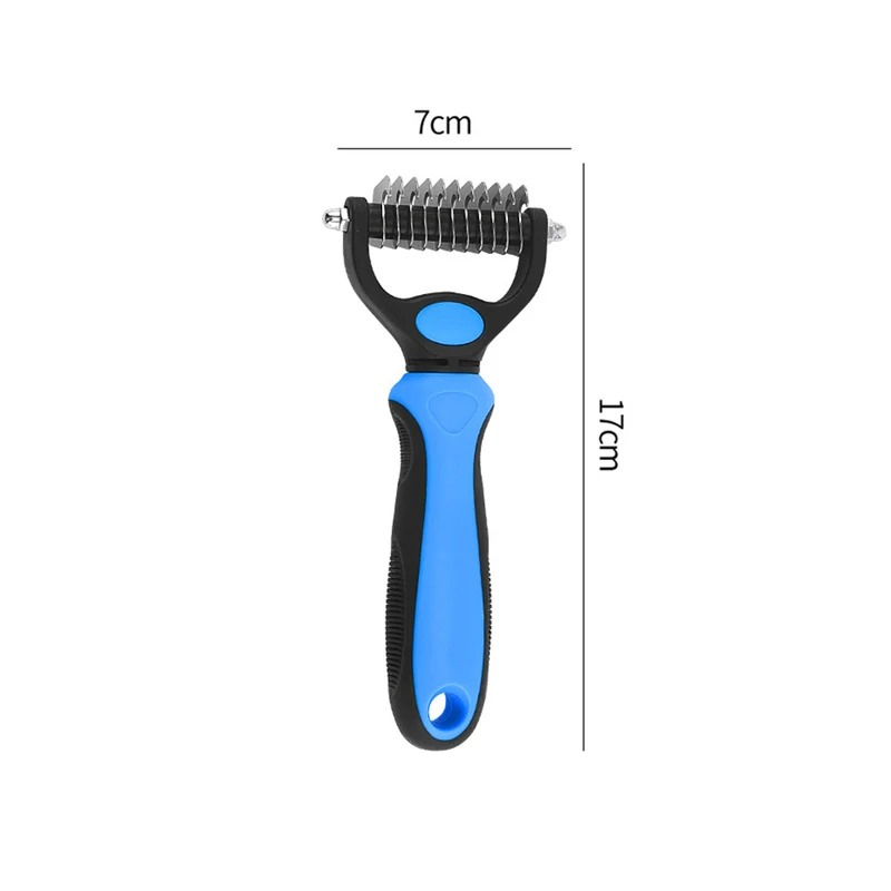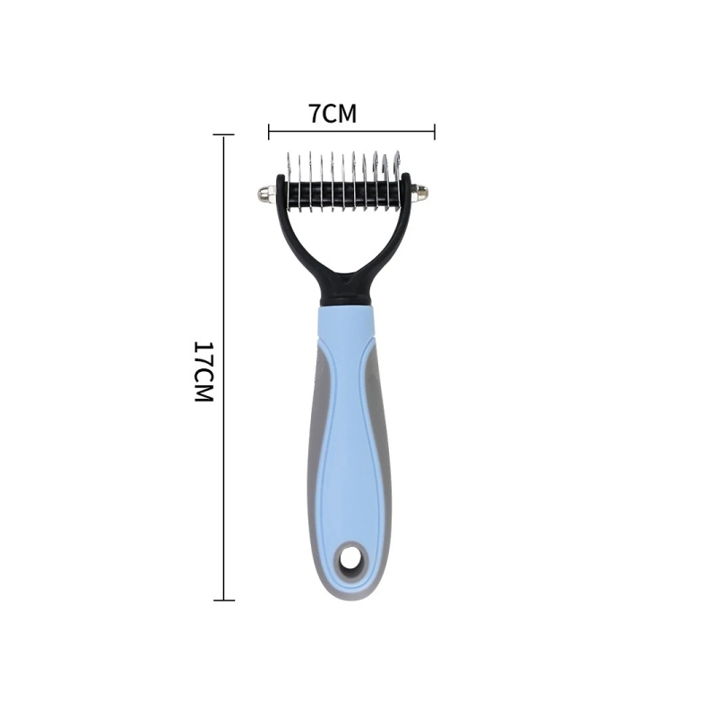 Crafted with durable stainless steel teeth, this brush is designed for long-term use and reliable performance. The dual-sided design features different tooth counts—one side for deep deshedding and another for gentle detangling. The ergonomic handle offers a comfortable grip for pet parents, making grooming sessions easy and enjoyable. Available in blue, pink, and red, this tool not only keeps your pet’s coat in top condition but also makes grooming a bonding experience.