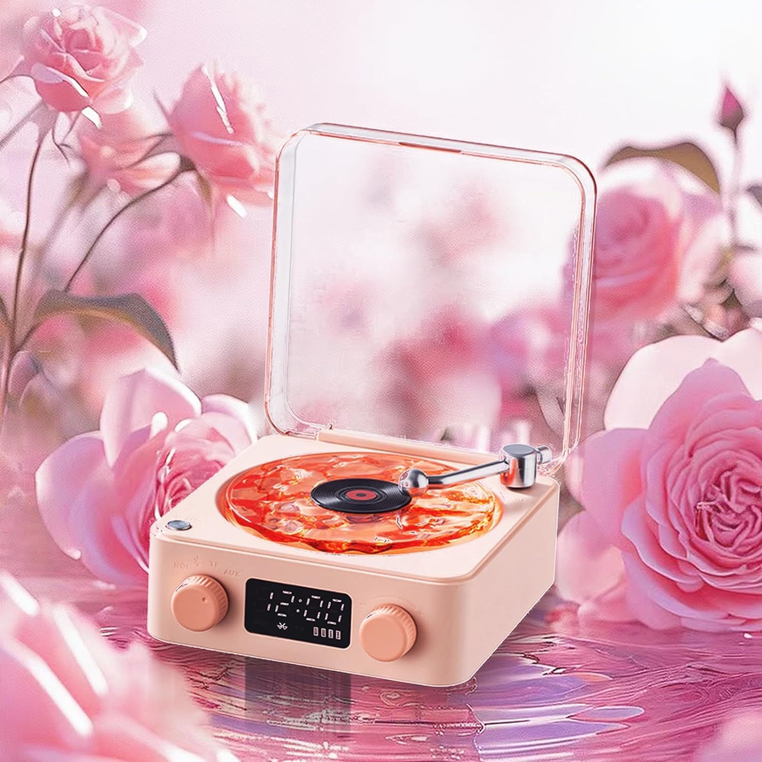 This turntable speaker doesn’t just play music; it brings a cozy, captivating atmosphere to your space. Enjoy high-quality sound and an enchanting light show that can help you relax, sleep, or simply add an artistic touch to your room. With a lightweight design of just over 1 lb and compact dimensions (5.6 x 5.6 x 2.6 inches), it fits perfectly on any shelf, bedside table, or workspace. Long-lasting with up to 8 hours of playtime in white noise mode, it’s the ideal companion for relaxation, focus, or entertainment.