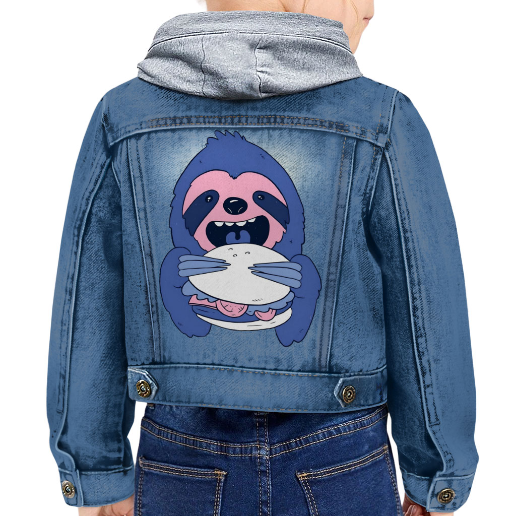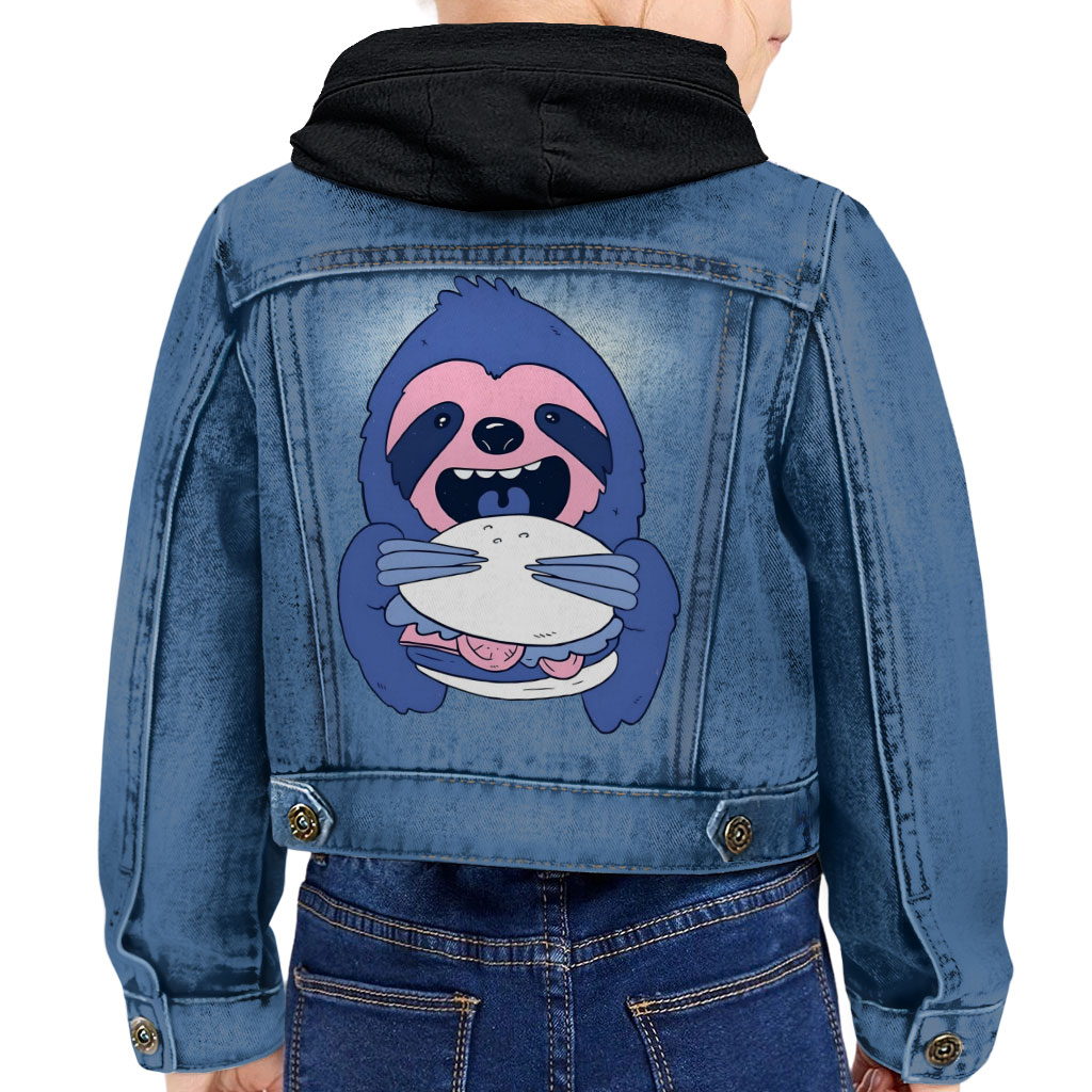 Sloth Eating Burger Toddler Hooded Denim Jacket