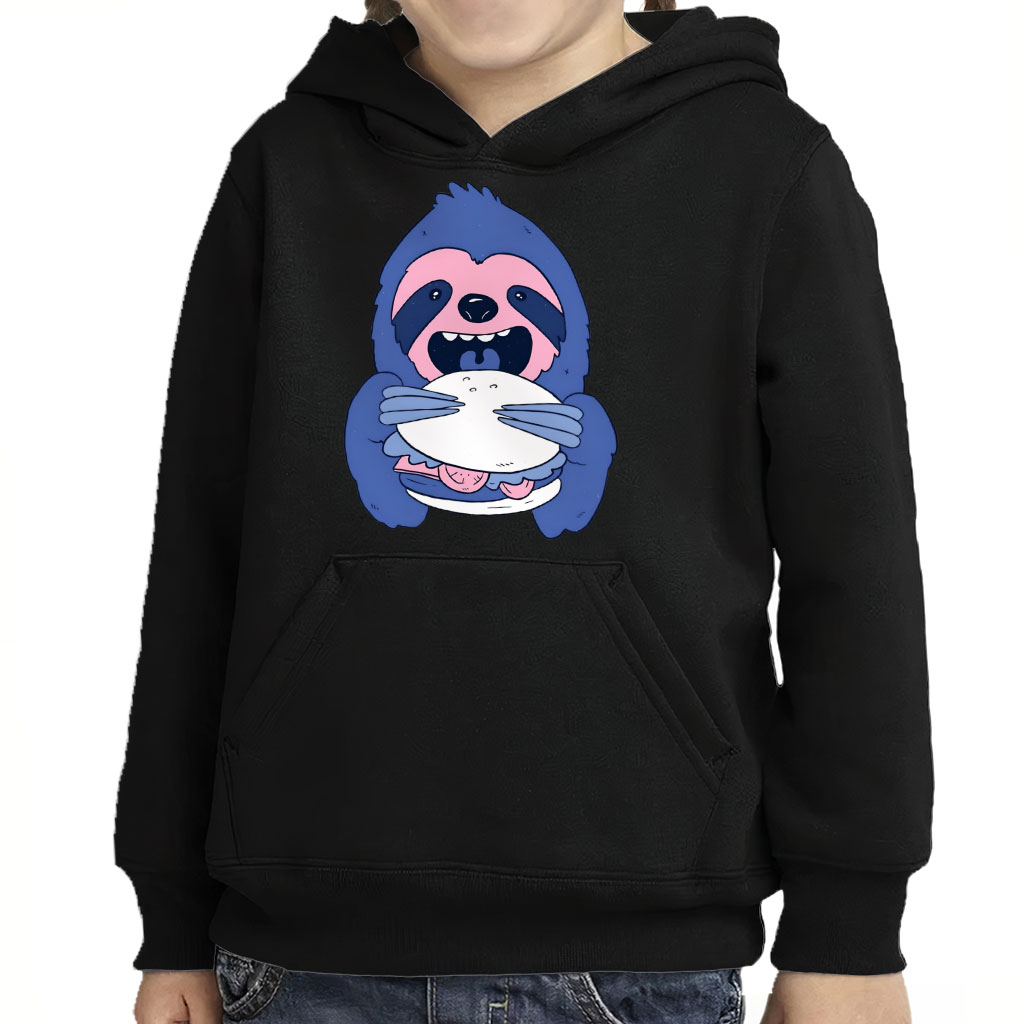 With a super soft blend, toddlers will love this pullover for playtime and every adventure. Sloth Eating Burger Toddler Pullover Hoodie is featured kangaroo pockets, ribbed cuffs, and no drawstrings.