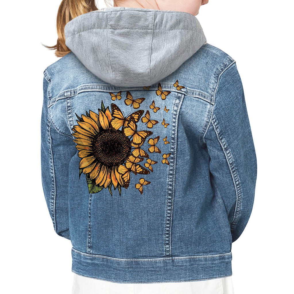 Sunflower Butterflies Kids’ Hooded Denim Jacket