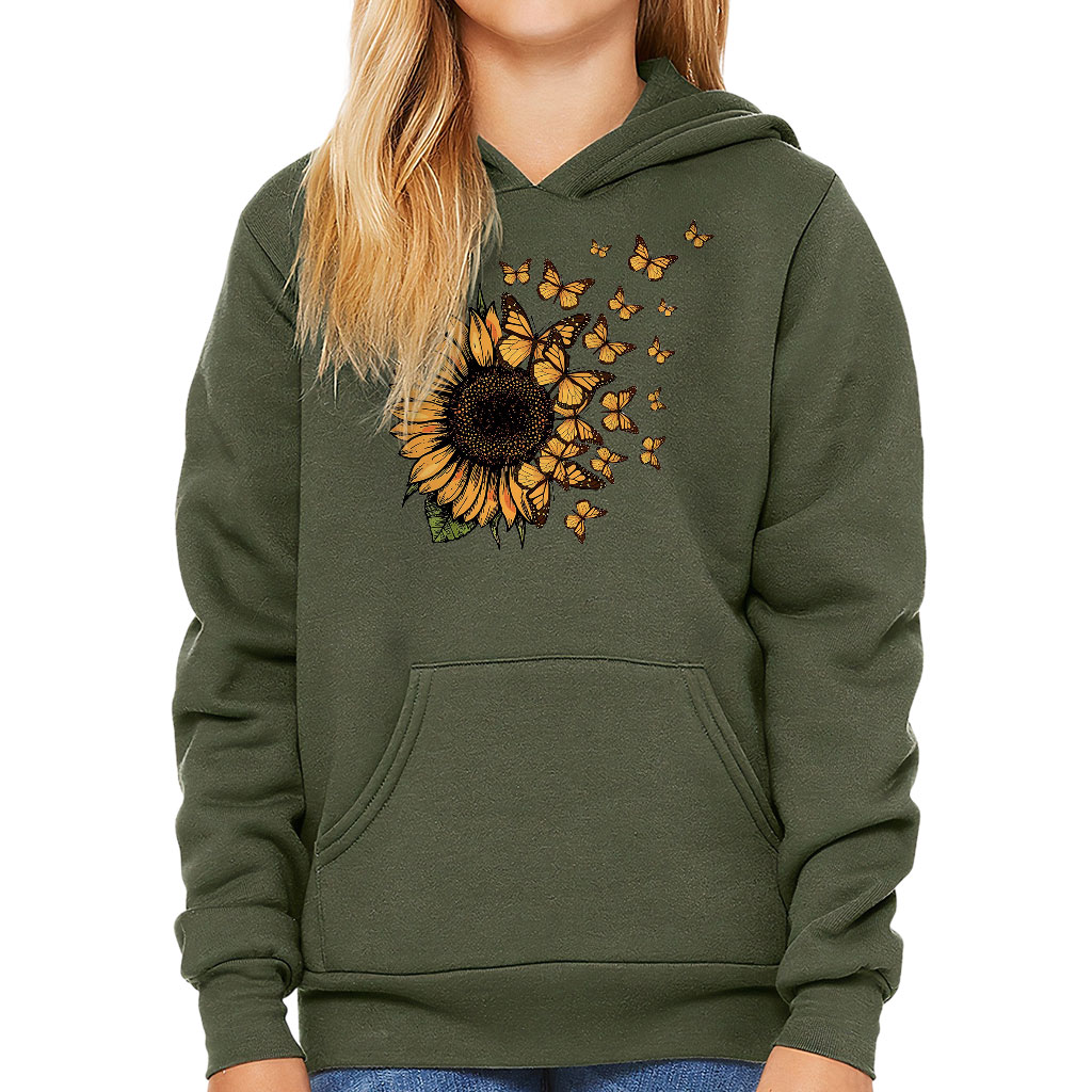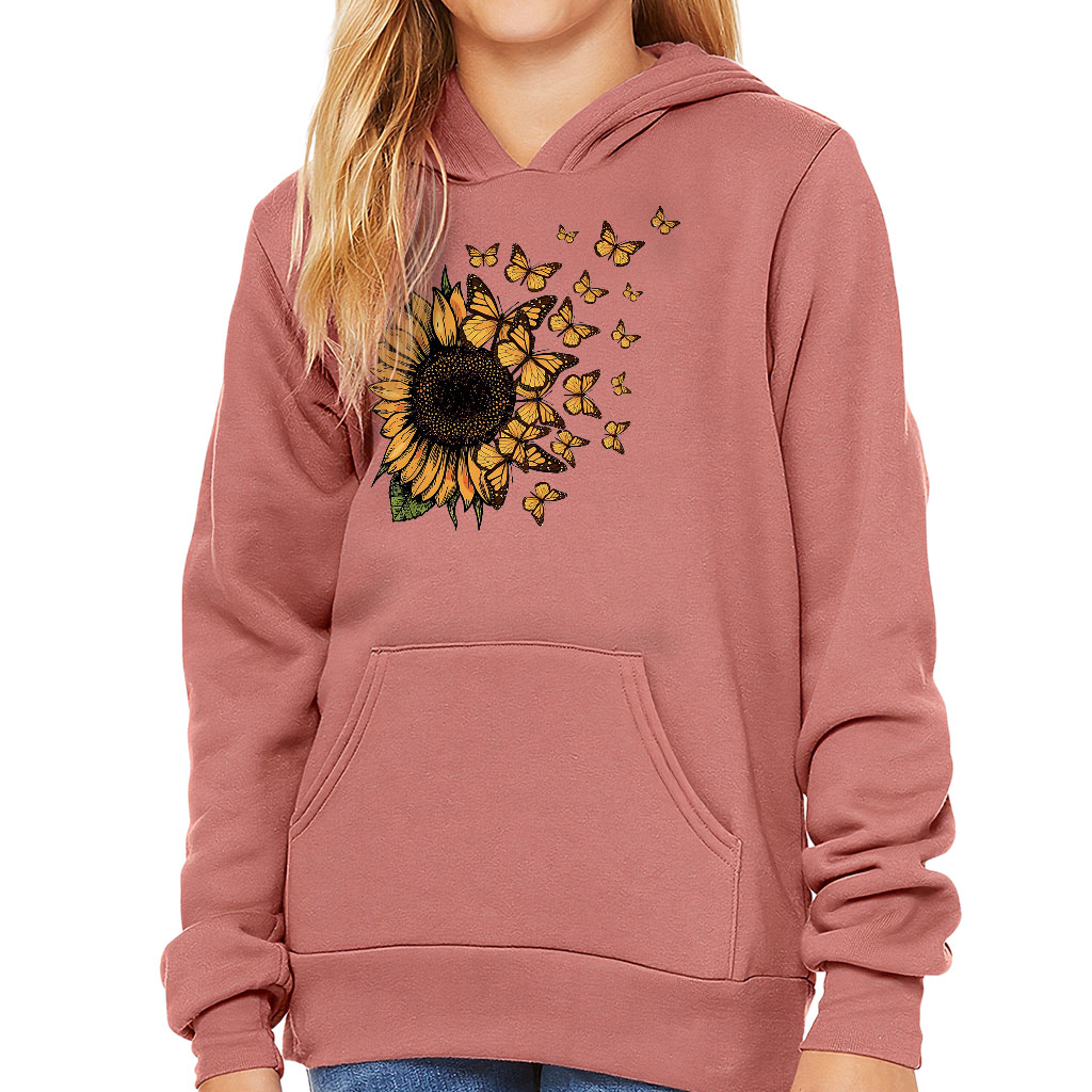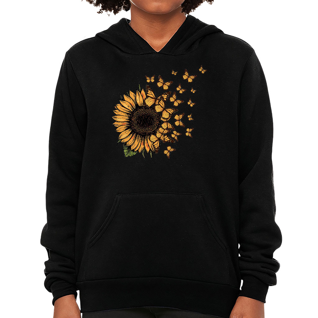 Sunflower Butterflies Kids’ Hoodie is no ordinary piece of clothing. Its top-stitched hood and