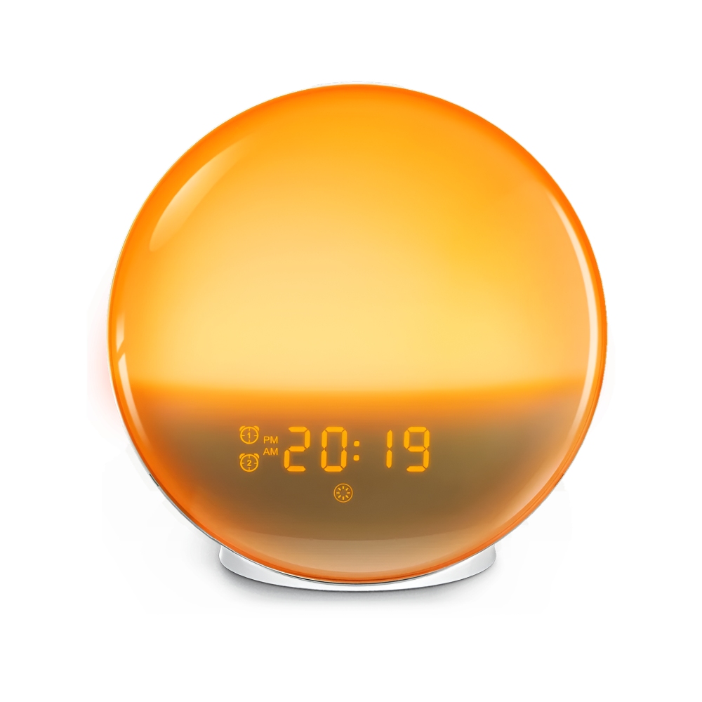 Transform your mornings with our Sunrise Alarm Clock, designed to gently wake you with a beautiful simulation of a rising sun. Perfect for heavy sleepers and children, this innovative digital clock gradually brightens your room, filling it with warm light to ease you into the day. Accompanied by soothing natural sounds or your favorite FM radio station, it ensures a refreshing start each morning.