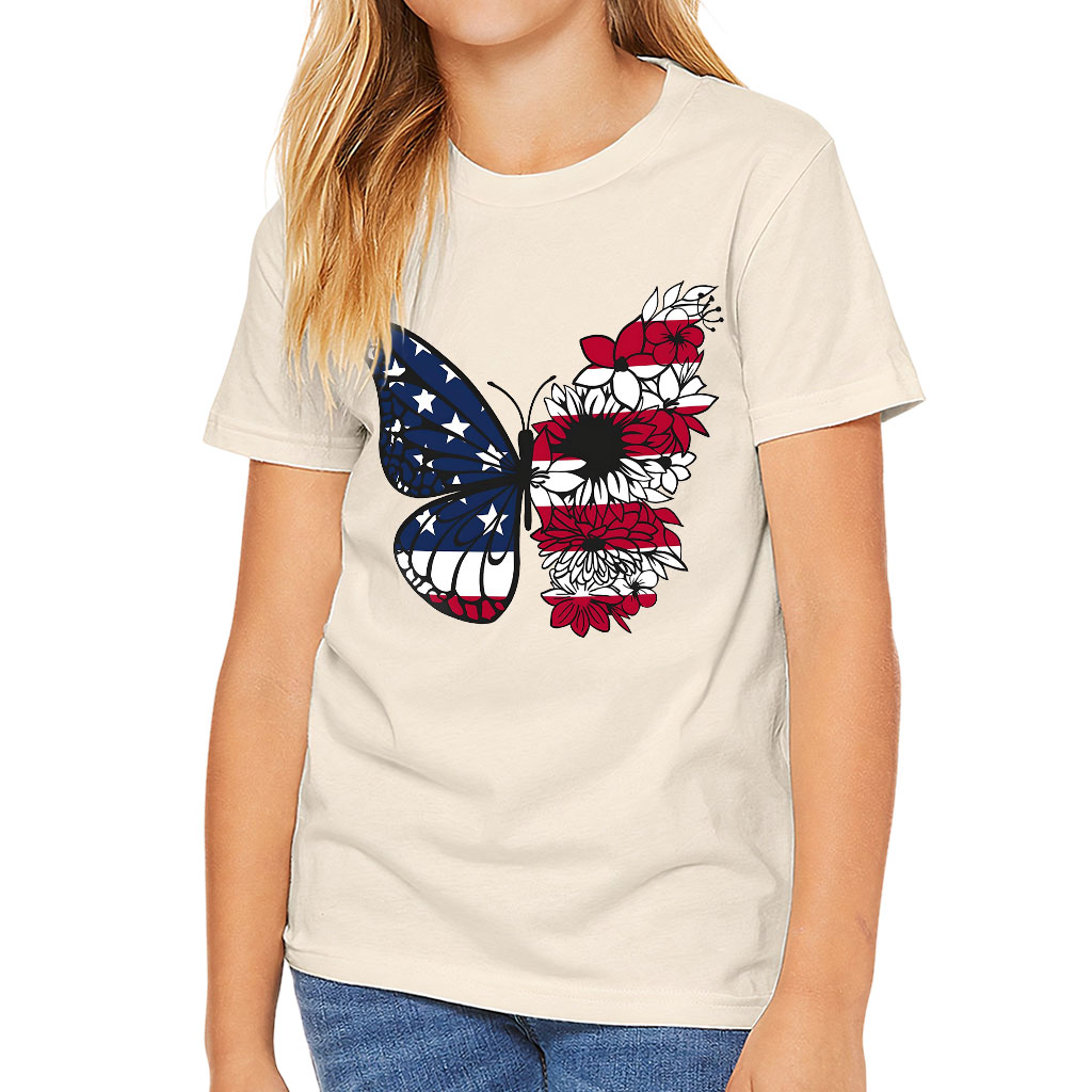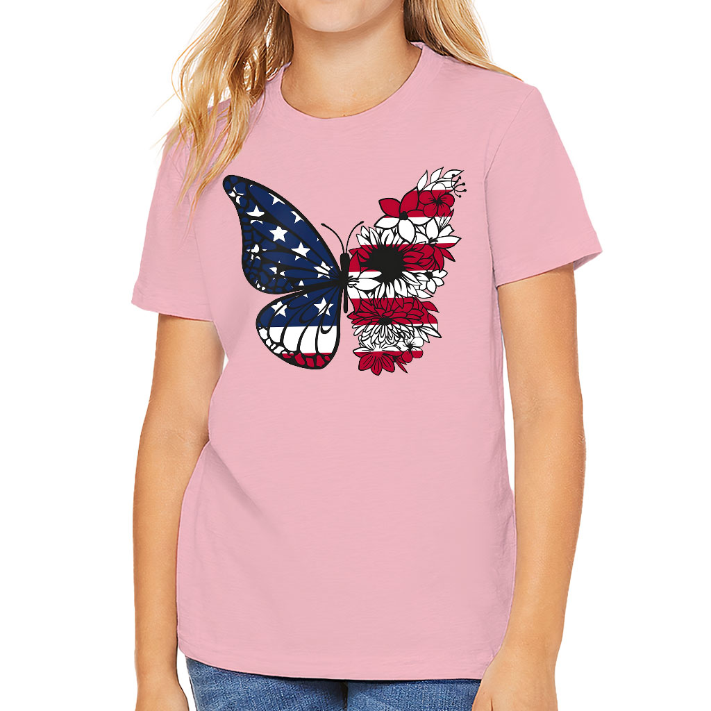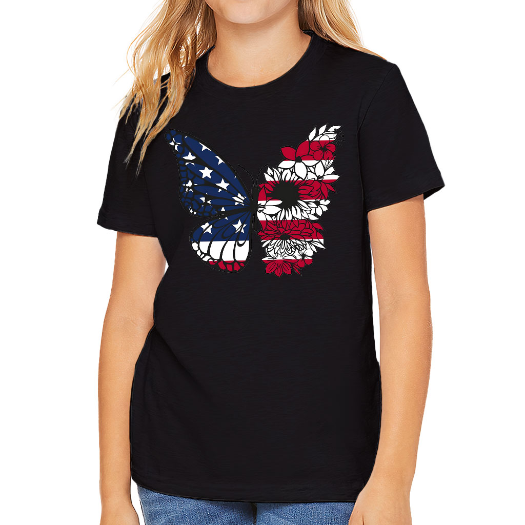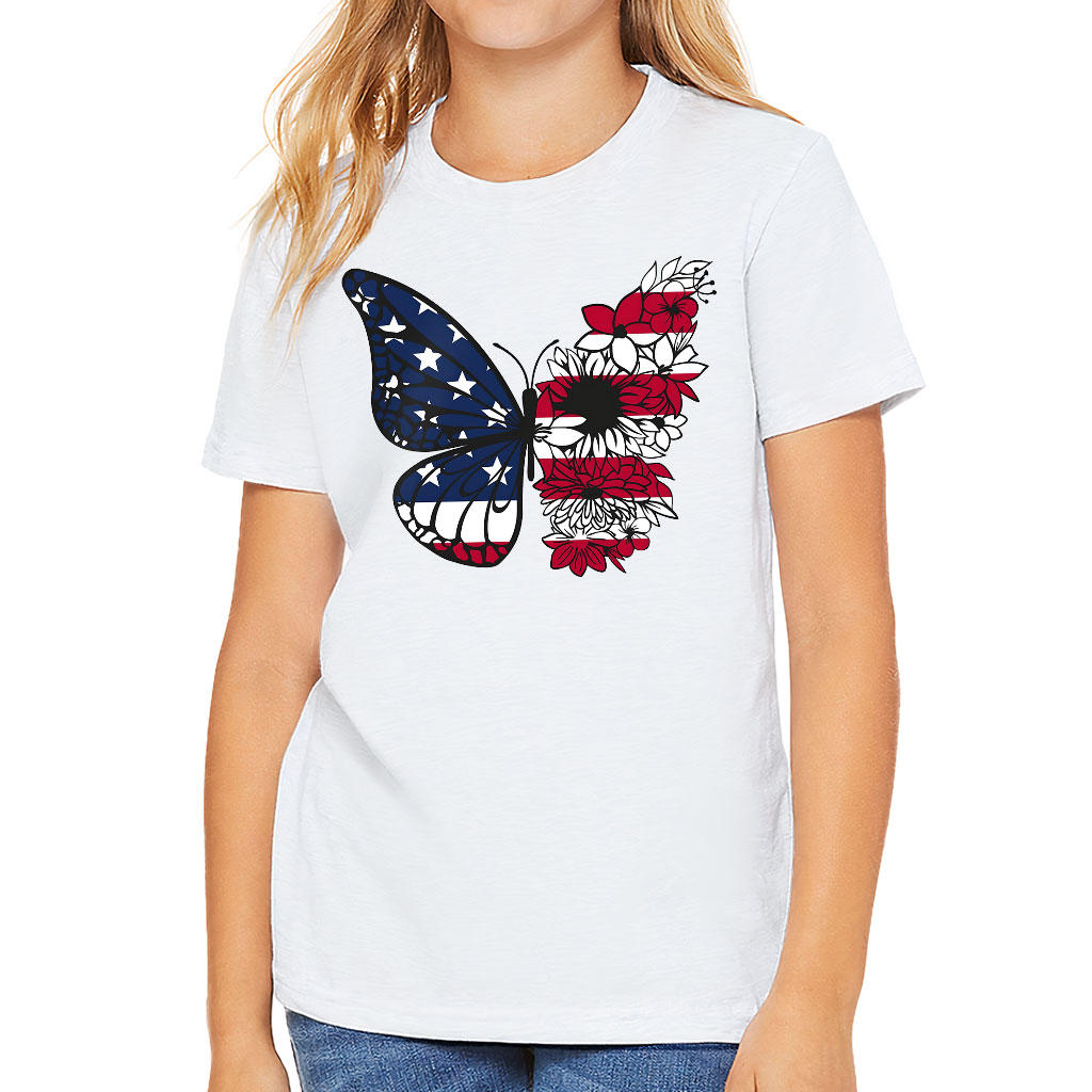 USA Butterfly Kids’ T-Shirt – Patriotic Butterfly Clothing – American Flag Clothing