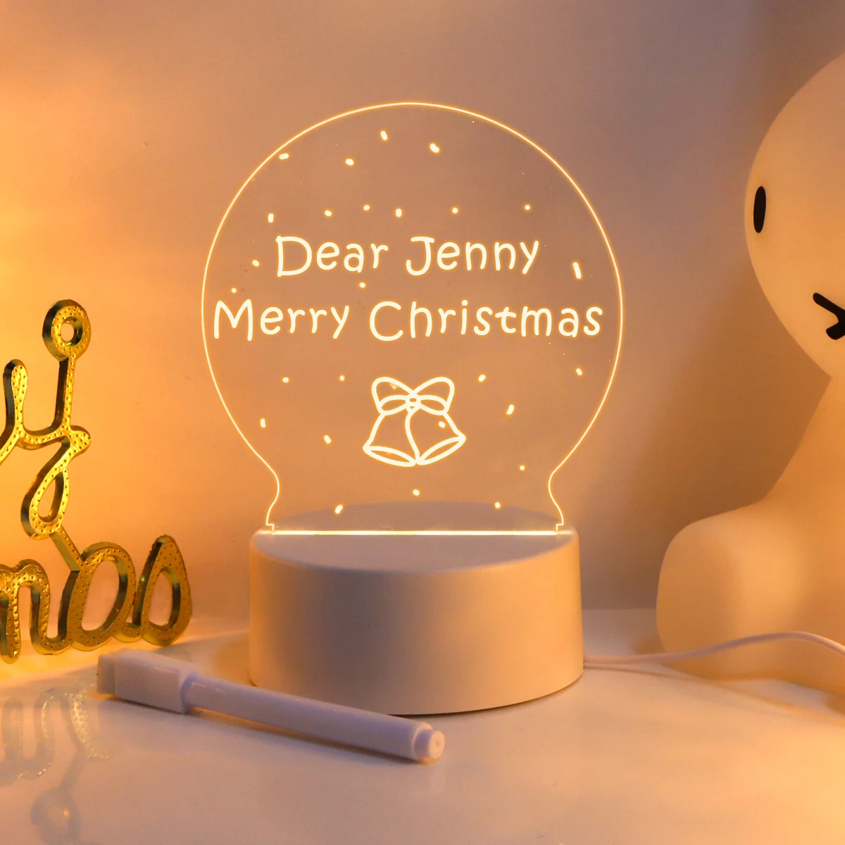 Make every message shine with this USB LED Message Board Night Light, a charming and practical addition to any room. Perfect for jotting down notes, sharing thoughts, or even crafting heartfelt messages, this unique night light combines creativity with function. Designed with transparent acrylic and equipped with warm LED lighting, it creates an inviting atmosphere while serving as an eye-catching decorative piece. Ideal for kids’ rooms, cozy bedroom setups, or as a romantic gesture, this versatile light brings personality and warmth wherever it’s placed.