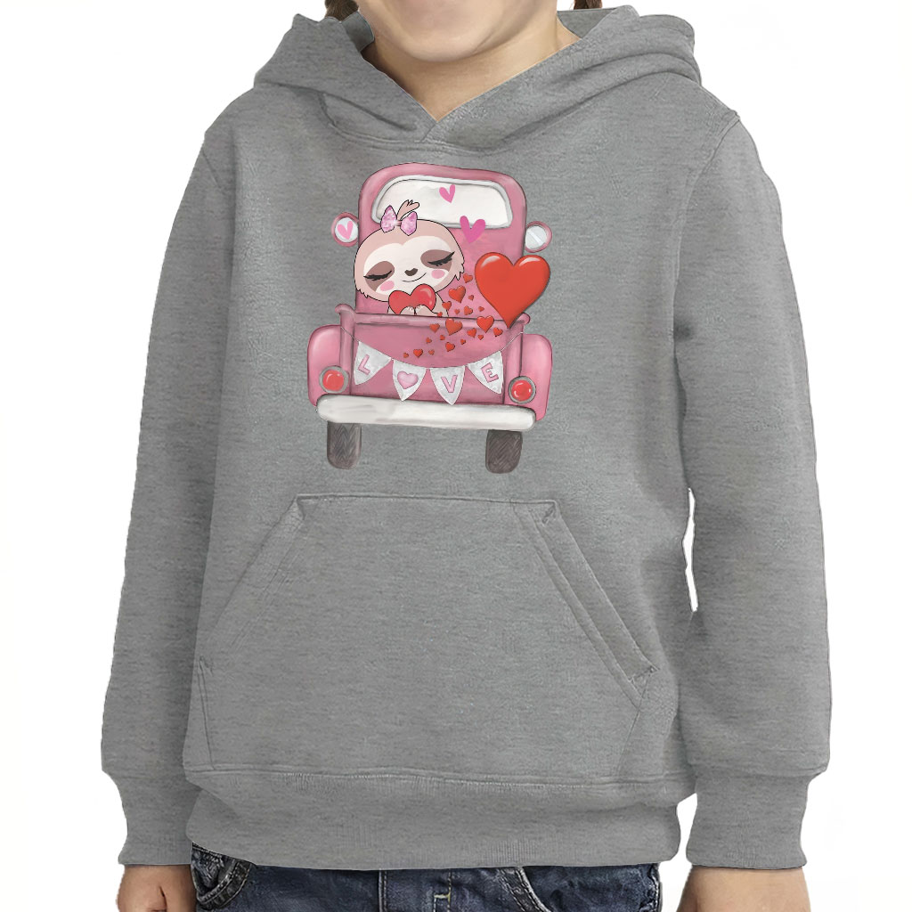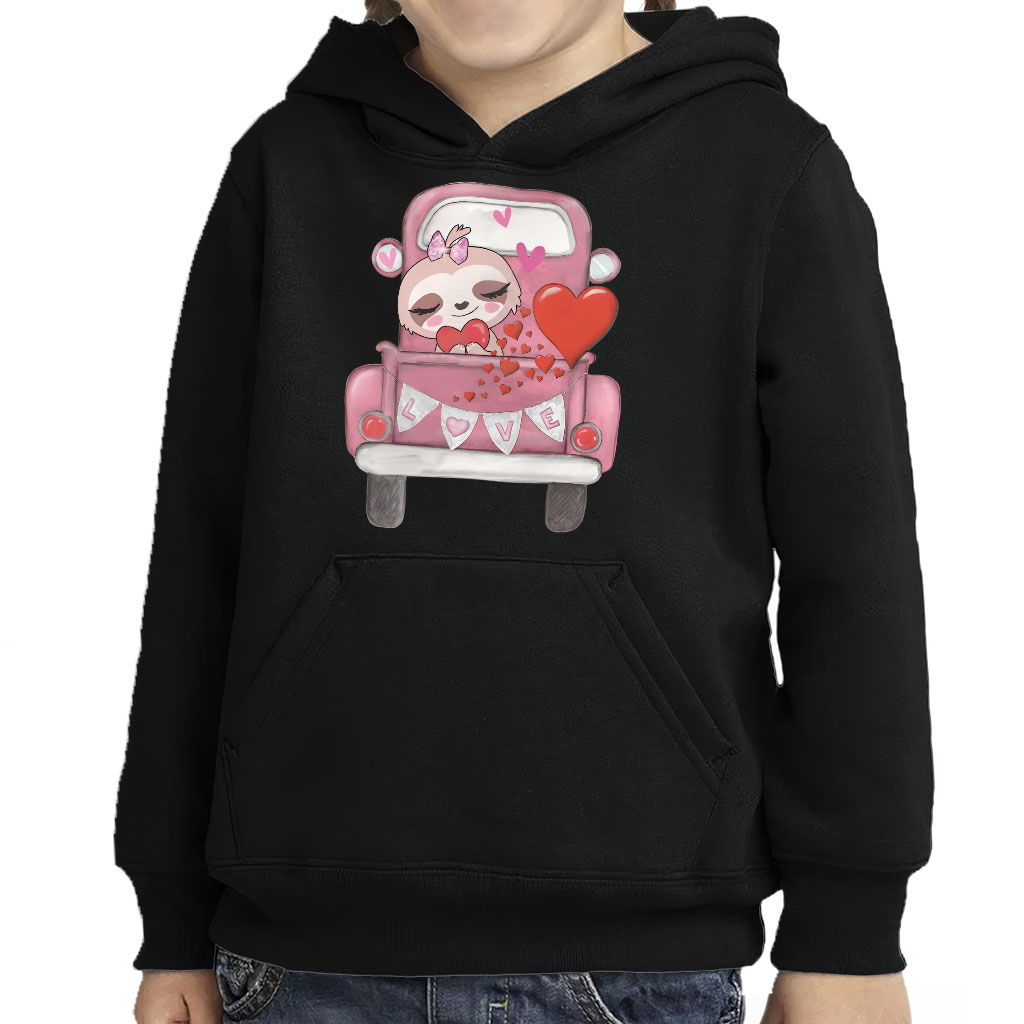 With a super soft blend, toddlers will love this pullover for playtime and every adventure. Valentines Day Sloth Toddler Pullover Hoodie is featured kangaroo pockets, ribbed cuffs, and no drawstrings.