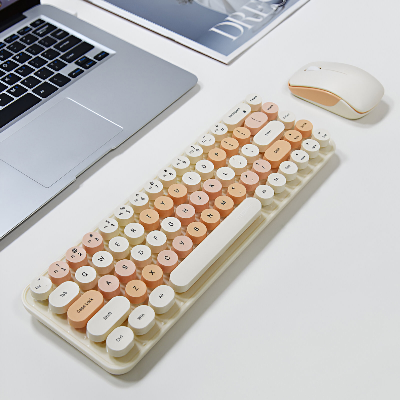 Revitalize your workspace with the Wireless Compact Keyboard and Mouse Set, featuring cute and colorful round keycaps that bring a delightful splash of color to your desk. Designed for efficiency and comfort, this compact keyboard fits snugly on any desktop or laptop setup without taking up too much space, making it an ideal choice for home offices, dorm rooms, or anyone looking to add a touch of charm to their tech setup. Perfectly blending style and function, this keyboard and mouse combo is not only visually appealing but also packed with features that elevate your typing and navigation experience.